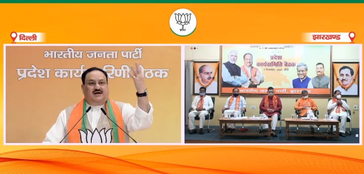 *BJP's national president JP Nadda Jharkhand BJP via video conferencing from New Delhi.