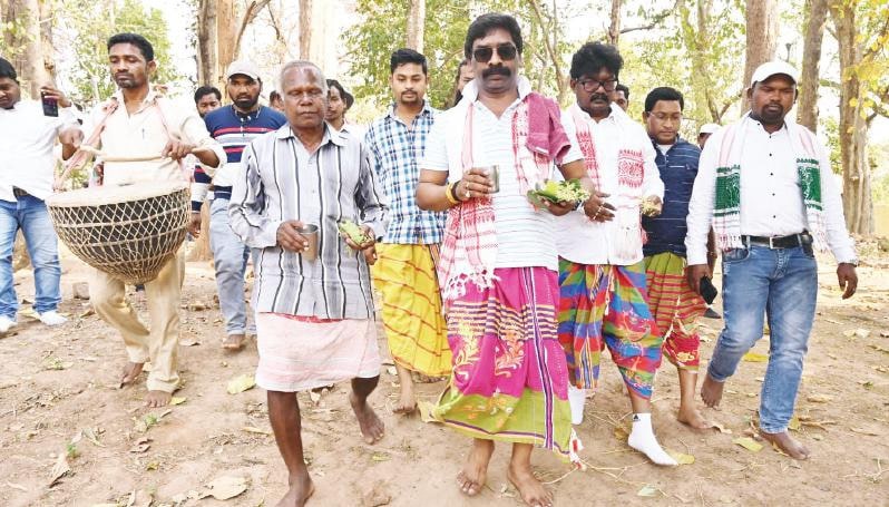 Ramgarh: Jharkhand Chief Minister Hemant Soren on Thursday participated in the Baha Puja at his ancestral village in Nemra which is located in Gola block of this district. Clad in traditional attire the Chief Minister reached the Sarna Sthal along with his other family members and performed the rituals.