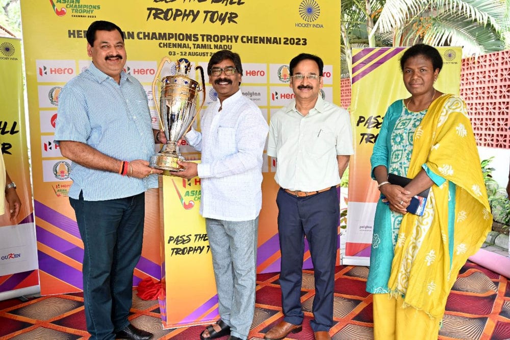 Ranchi: Chief Minister Hemant Soren unveiled the Hero Asian Hockey Championship Trophy Chennai - 2023 to begin on August 3 in Ranchi on Monday. On this occasion, he launched the campaign "Pass the Ball Trophy Tour" and extended his best wishes to the Indian Hockey Team. The Chief Minister hoped that the Indian hockey team would show better and better performance in this championship.