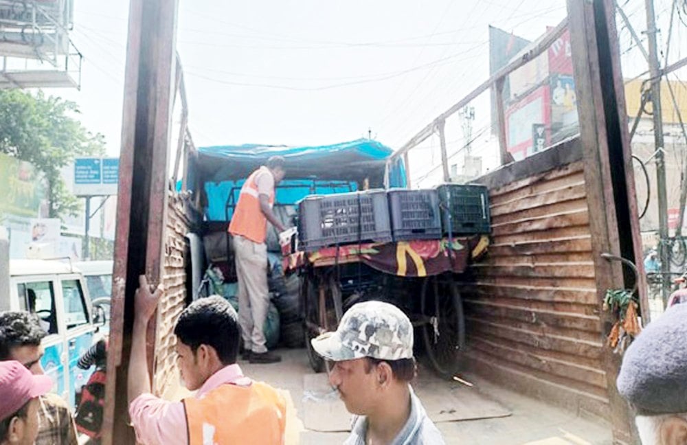 Ranchi: The Municipal Corporation's enforcement team conducted an encroachment-free campaign in the city. In this series, the enforcement team got the shops installed on the footpath at Albert Ekka Chowk of the city removed. The carts and stalls were confiscated. The enforcement team under the leadership of Traffic DSP Jitvahan Oraon is busy in making the city encroachment-free.