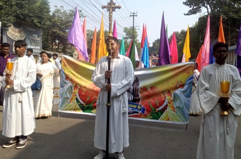 Ranchi: Thousands of Christian believers took out a huge procession from the Saint Mary Church on the occasion of the festival of Christ the King in the memory of Jesus Christ. During this time, the statue of Jesus Christ was installed in front of the Ursuline Convent School located on Purulia Road.