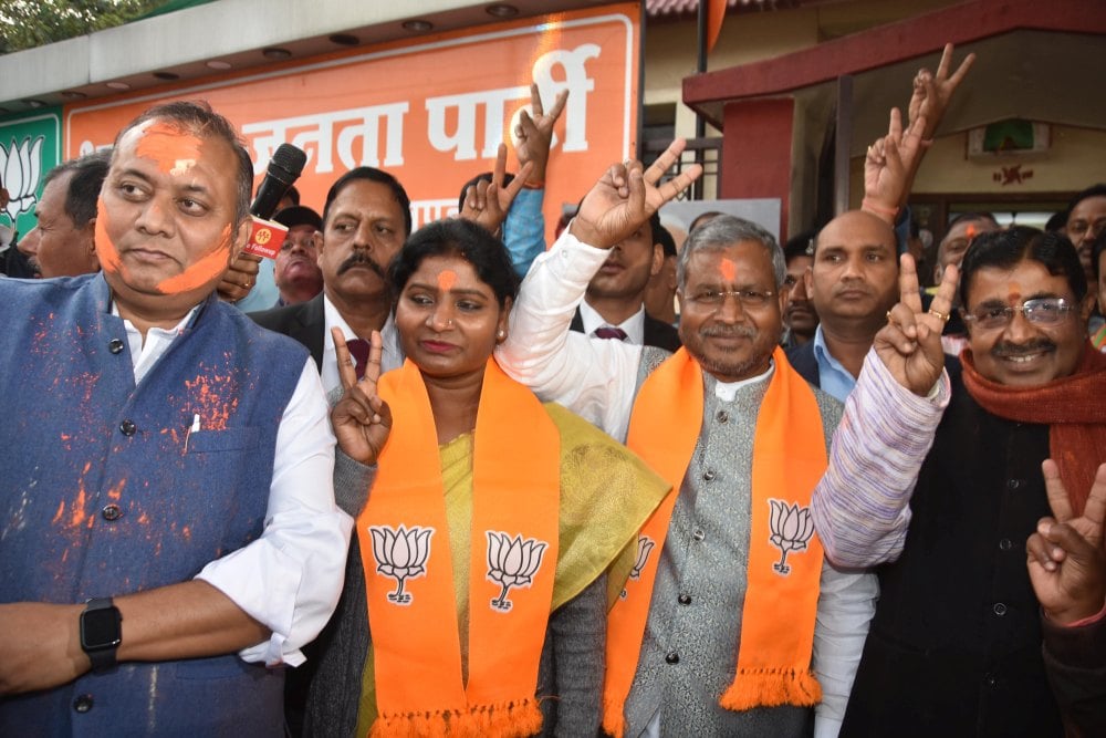 Under the leadership of State President and former Chief Minister Babulal Marandi, happiness was celebrated in the evening.