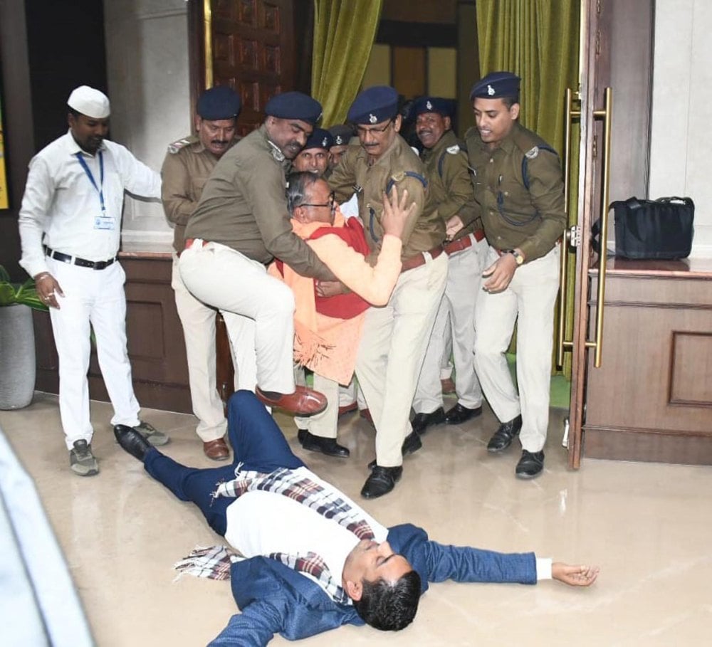 Ranchi: The ruckus of BJP MLAs continued in the House on the third day of the winter session of Jharkhand Assembly. Meanwhile, the Speaker angrily suspended BJP MLAs Bhanu Pratap Shahi and Biranchi Narayan from the entire assembly session. Marshals hanged both the MLAs and took them out of the House. Both were continuously creating ruckus in the house.