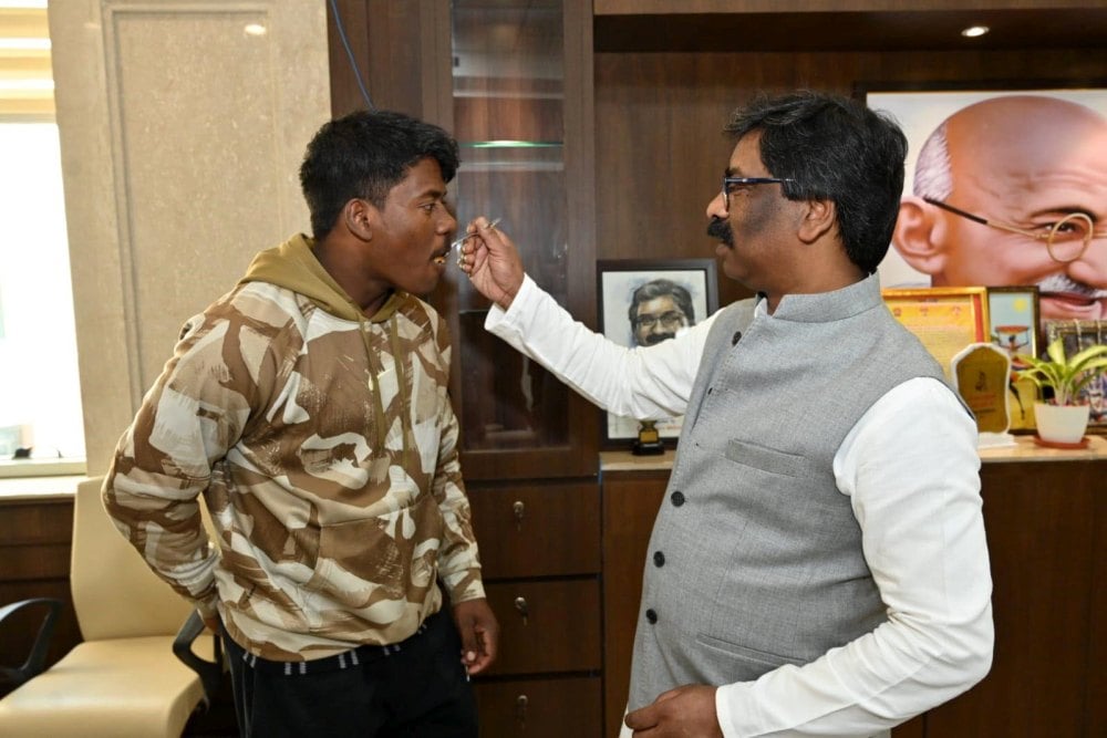 Ranchi: Rising cricket player Robin Minz met CM Hemant Soren in the Assembly premises on Thursday.