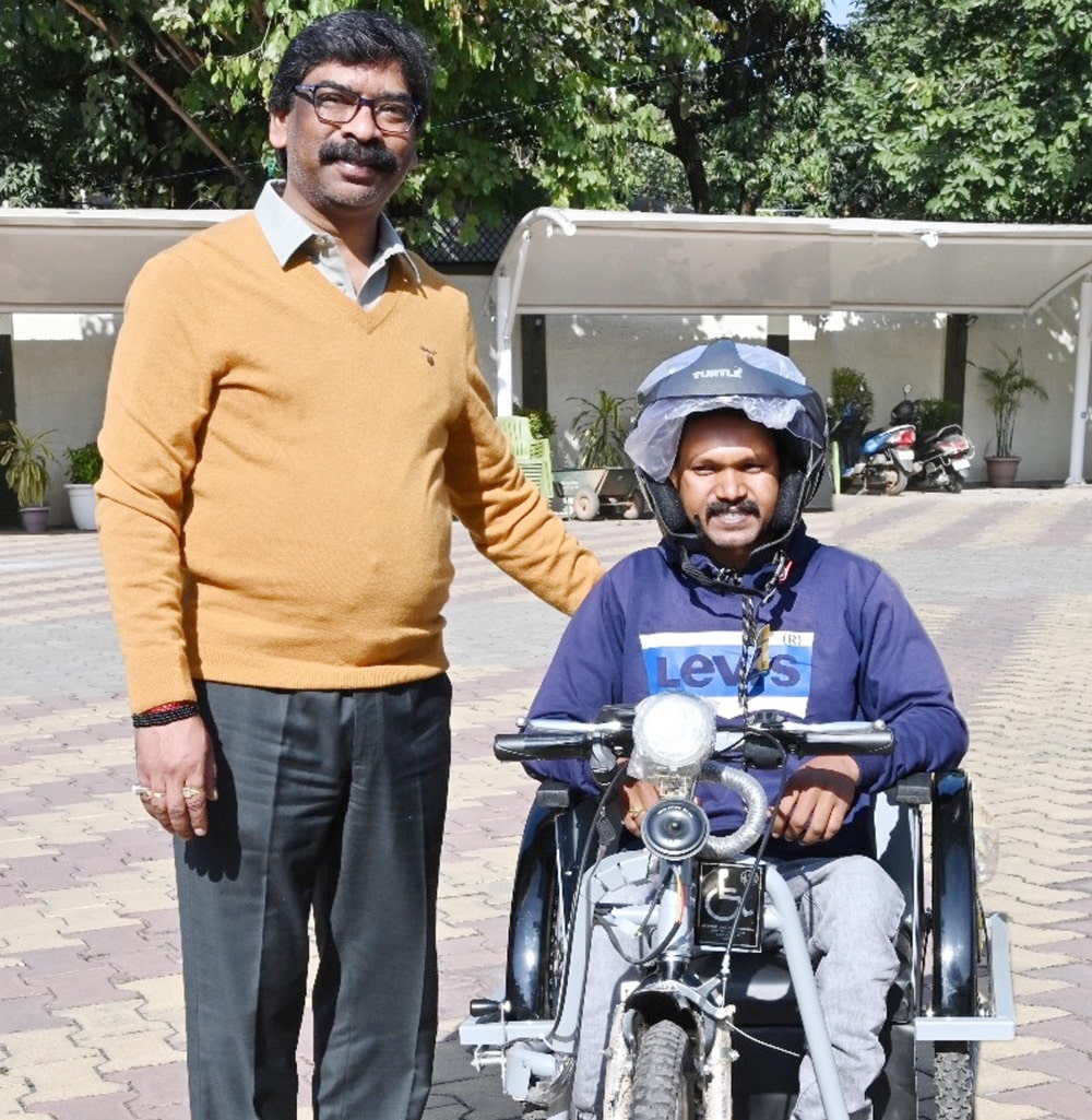 Ranchi: Chief Minister Hemant Soren encouraged Amrit Kumar Paswan, a resident of Ratu Road in the capital Ranchi, by giving him a tricycle.
