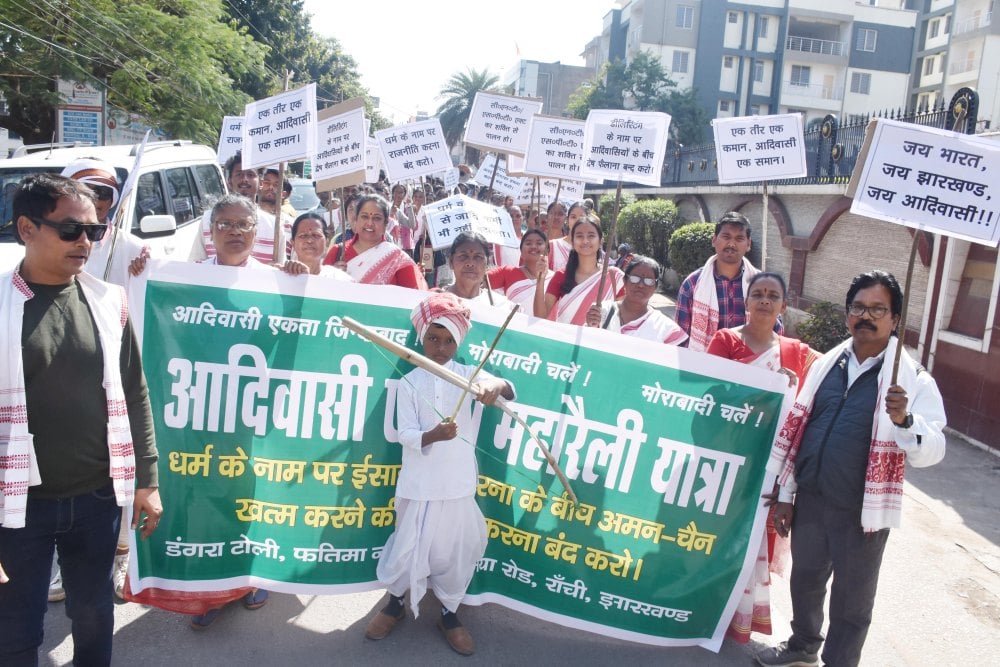 This Maharally has been organized in response to the recent delisting Maharally organized by Tribes Suraksha Manch, an organization of RSS. Former minister and state Congress working president Bandhu Tirkey, Ratan Tirkey, Prabhakar Tirkey, Central Sarna Committee President Ajay Tirkey, and Lakshmi Narayan Munda were present.