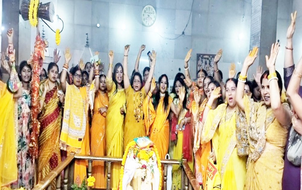 Ranchi: On behalf of Shri Shiv Baraat Mahasamiti Pahari Temple, hundreds of women pounded turmeric and performed the Haldi-Mehendi ritual of Mahakal in the temple premises.