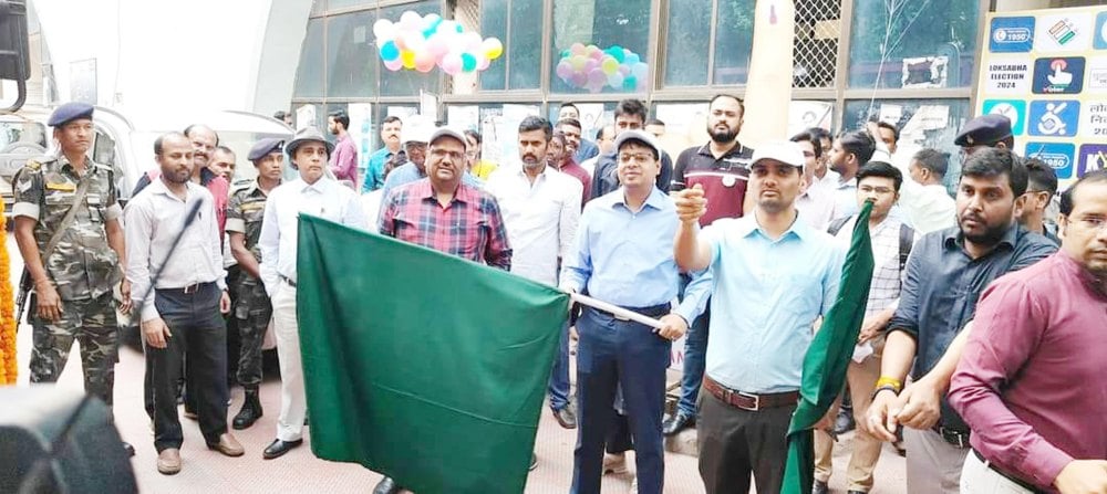 In this series on 13th April 2024, a voter awareness vehicle was flagged off from the Collectorate premises. District Election Officer cum Deputy Commissioner, Ranchi Rahul Kumar Sinha, and Nodal Officer Sweep Cell cum Deputy Development Commissioner, Ranchi Dinesh Kumar Yadav and Deputy Election Officer Bivek Kumar Suman flagged off the campaign vehicle.