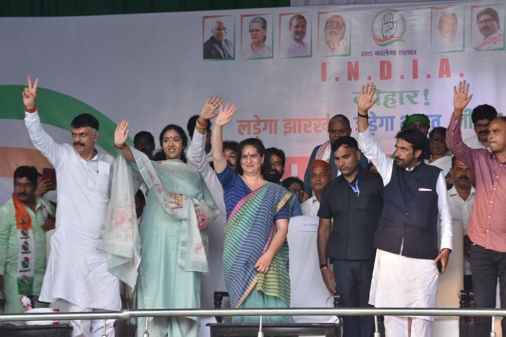 During Priyanka Gandhi's program, Chief Minister Champai Soren, Kalpana Soren, Jharkhand Congress state in-charge Ghulam Ahmed Mir, State Congress President Rajesh Thakur and many JMM leaders were present on the stage. In view of the third and fourth phase of elections in Jharkhand, Congress General Secretary Priyanka Gandhi visited Jharkhand. The third phase of voting is going to be held on May 25.