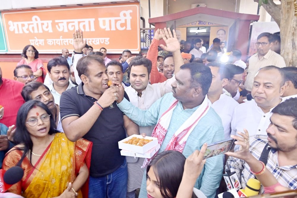 Ranchi: Firecrackers were burst at the BJP state office after the Lok Sabha election results were announced.
