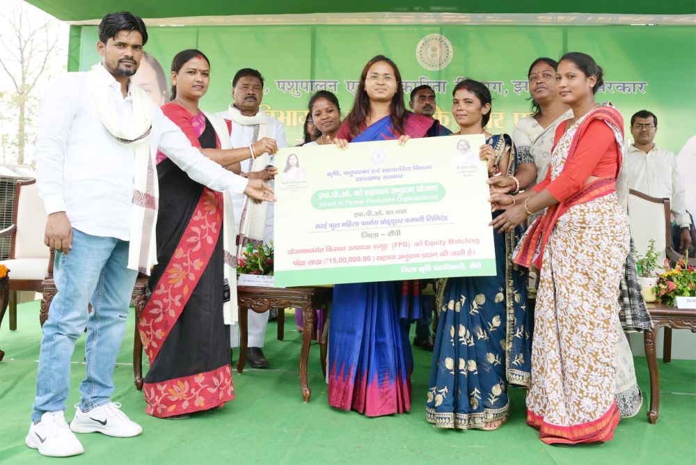 As part of the event, grants of ?15 lakh each were awarded to Sarhul Ajeevika Farmer Producer Company and Sarai Phool Mahila Farmer Producer Company. Under the Kisan Samriddhi Yojana, beneficiaries Punita Khalkho and Suman Oraon received support.