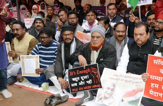 Ranchi: Thousands of people in the state capital on Thursday protested peacefully against the Citizenship Amendment Act NRC and NPR despite the rainfall.