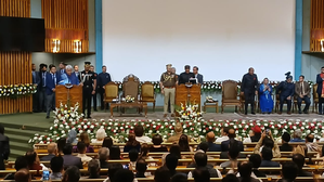 The leaders from the INDIA bloc, including Lok Sabha Leader of Opposition Rahul Gandhi, Congress leader Priyanka Gandhi Vadra, Samajwadi Party chief Akhilesh Yadav, PDP chief Mehbooba Mufti, AAP leader Sanjay Singh, CPI leader D. Raja and others attended the ceremony.
