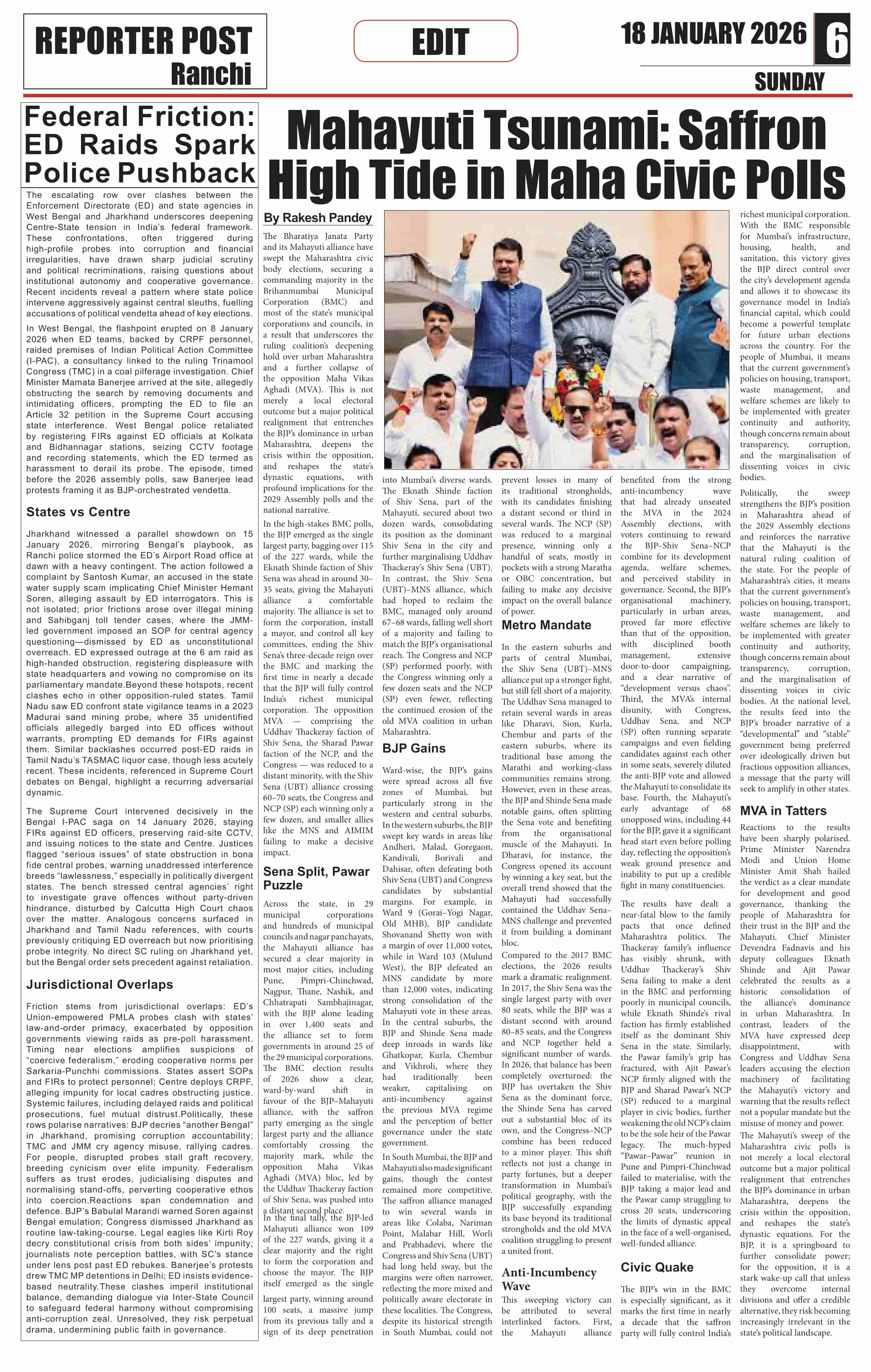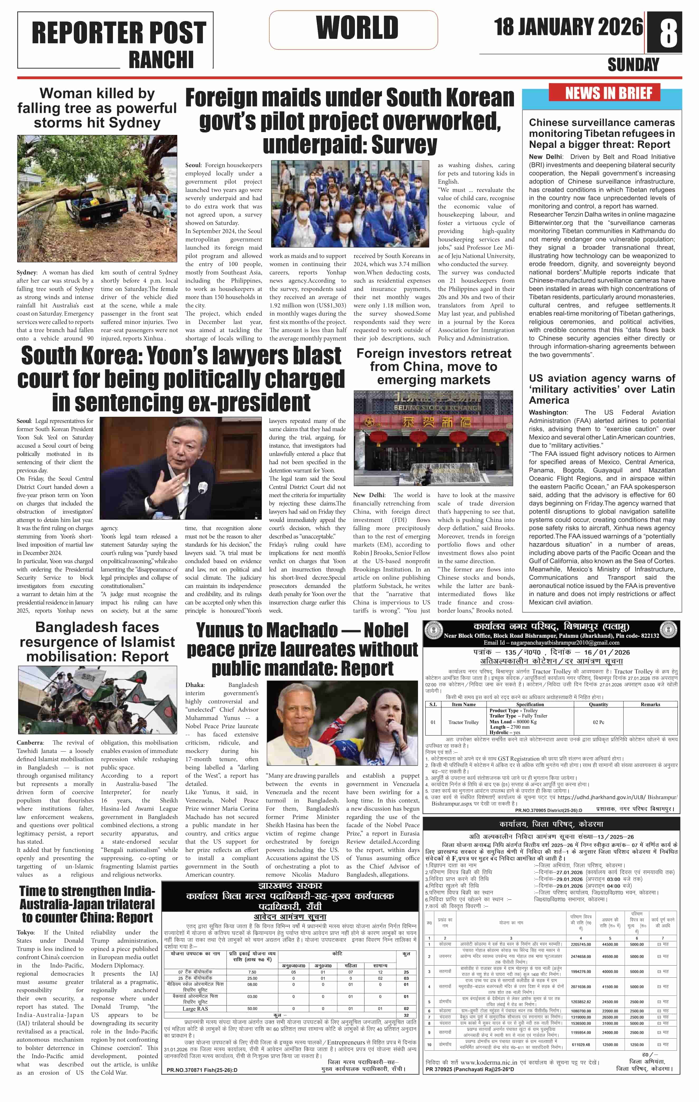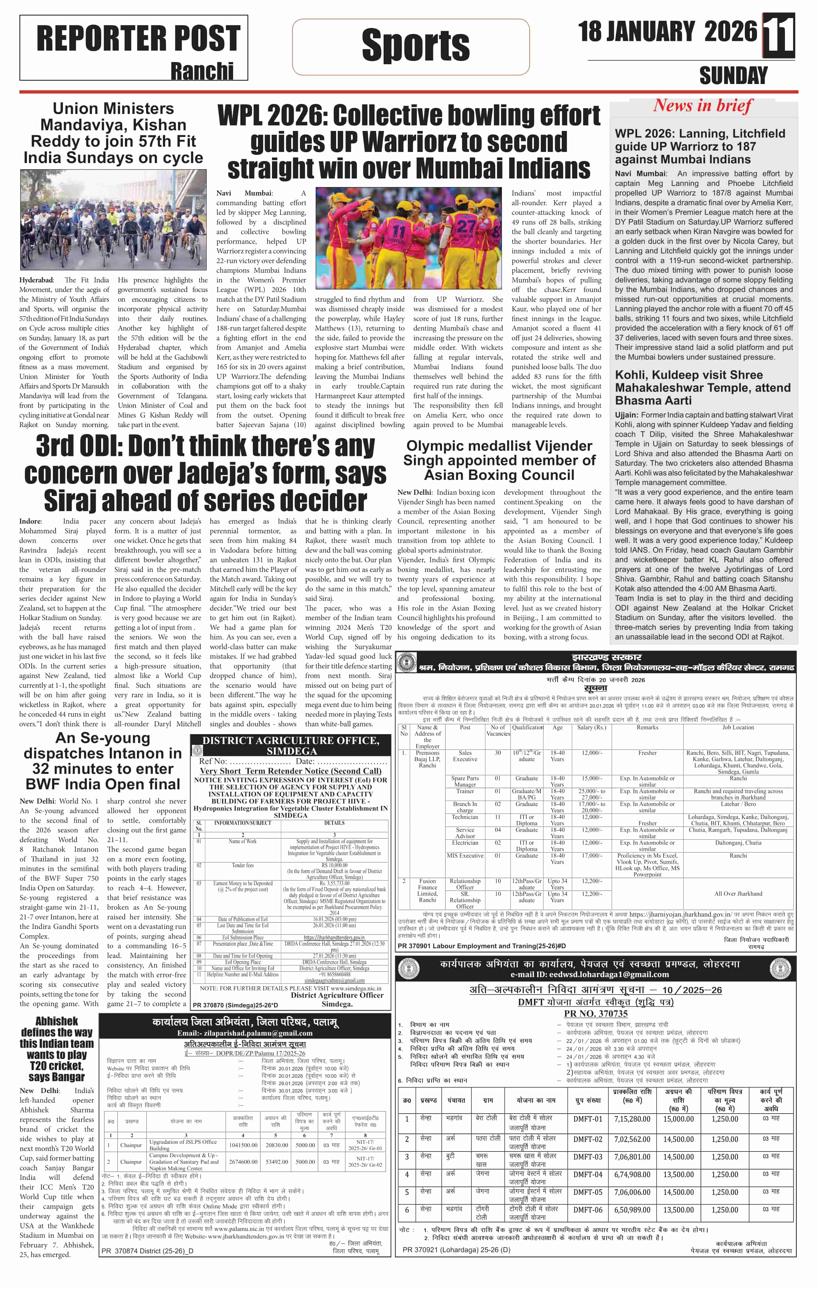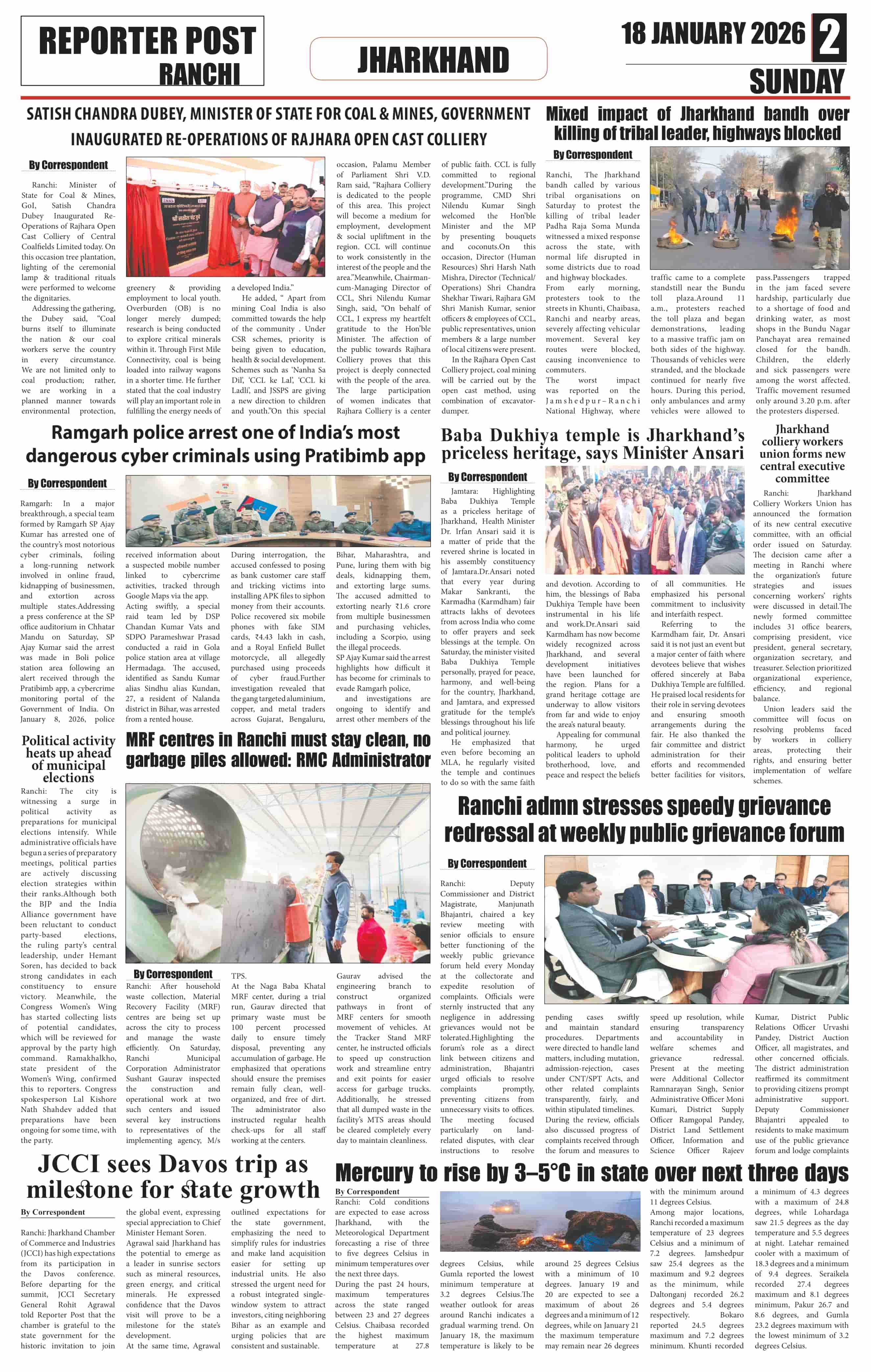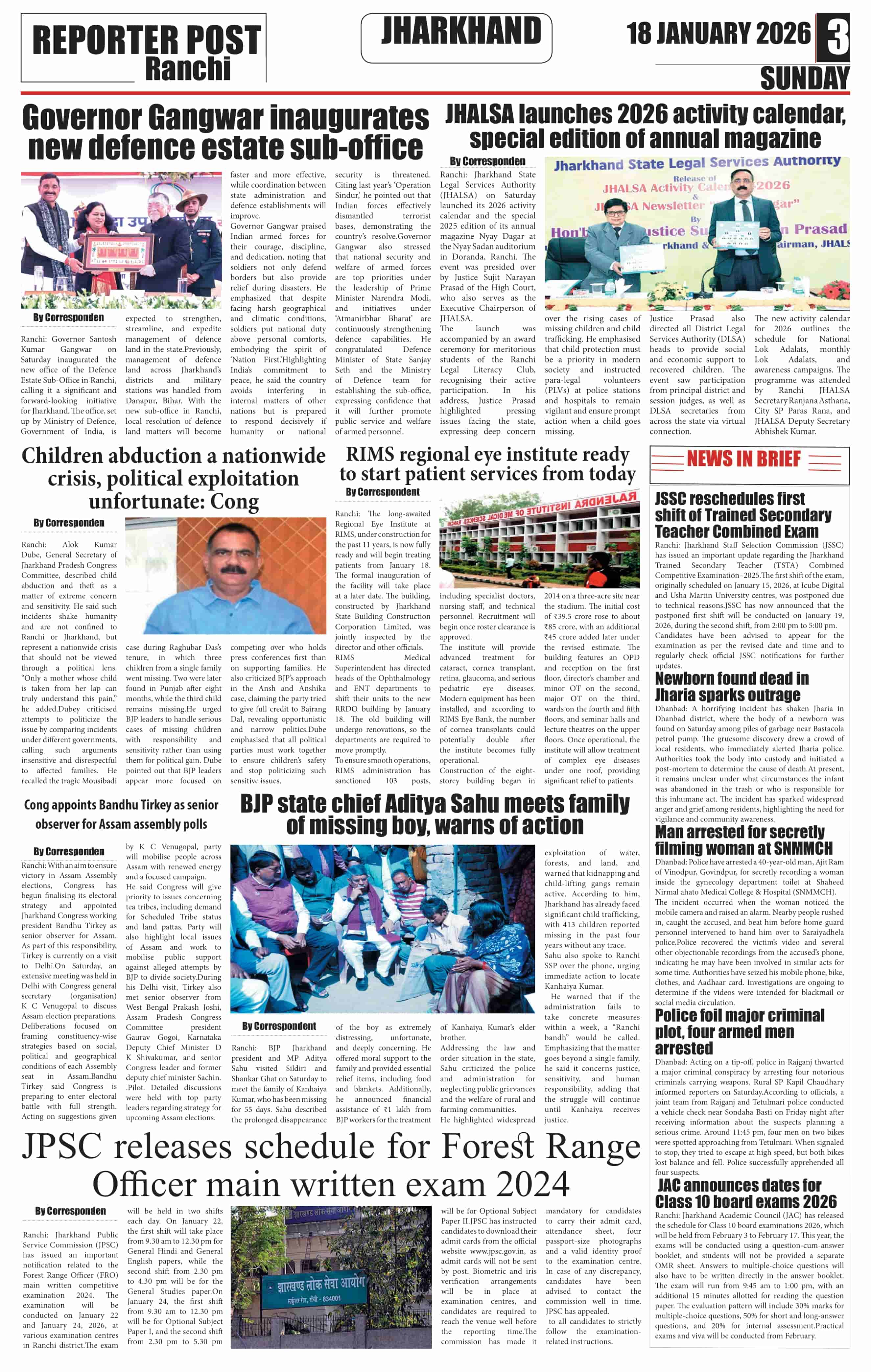 Sun, January 18, 2026 | Ranchi Edition