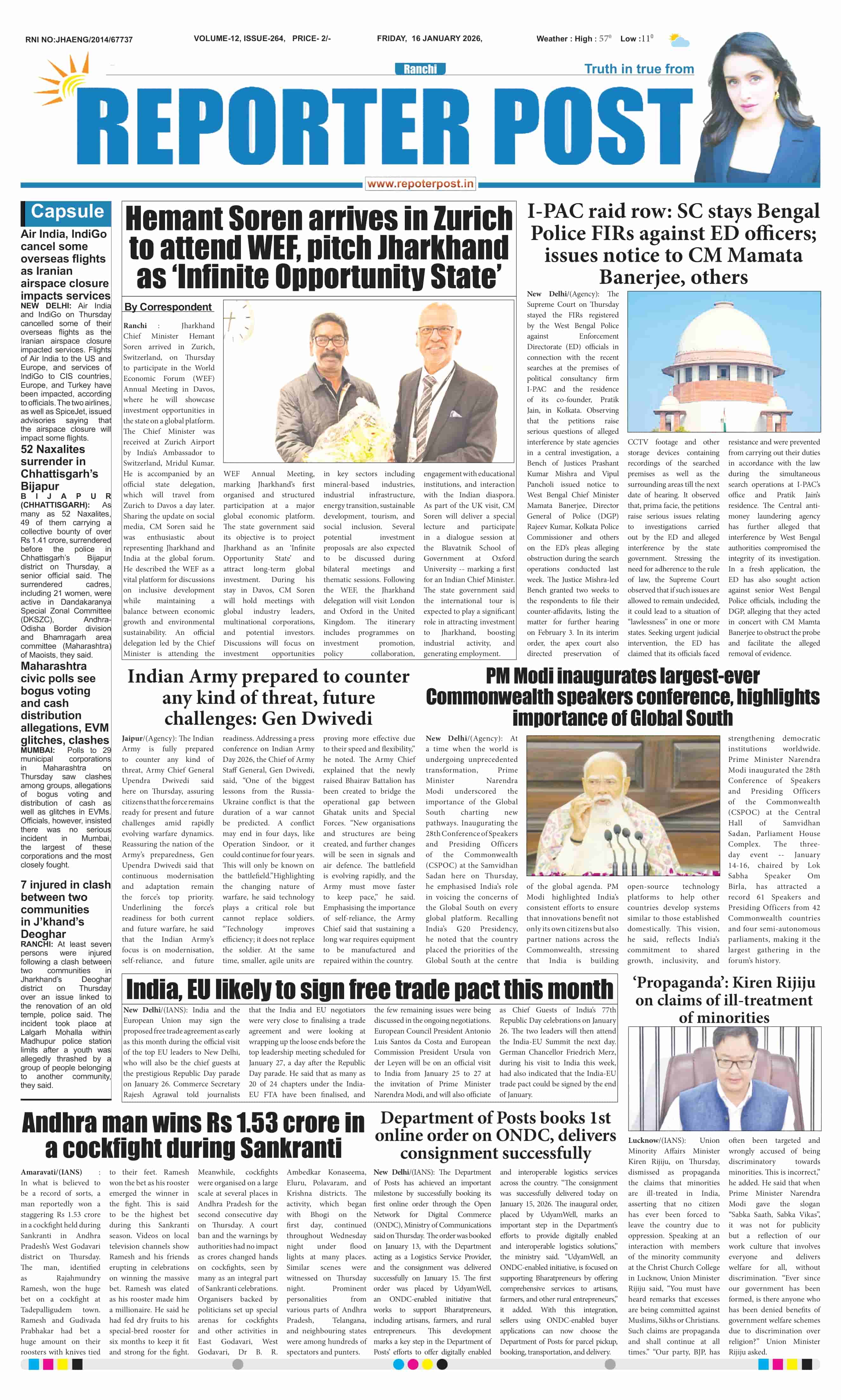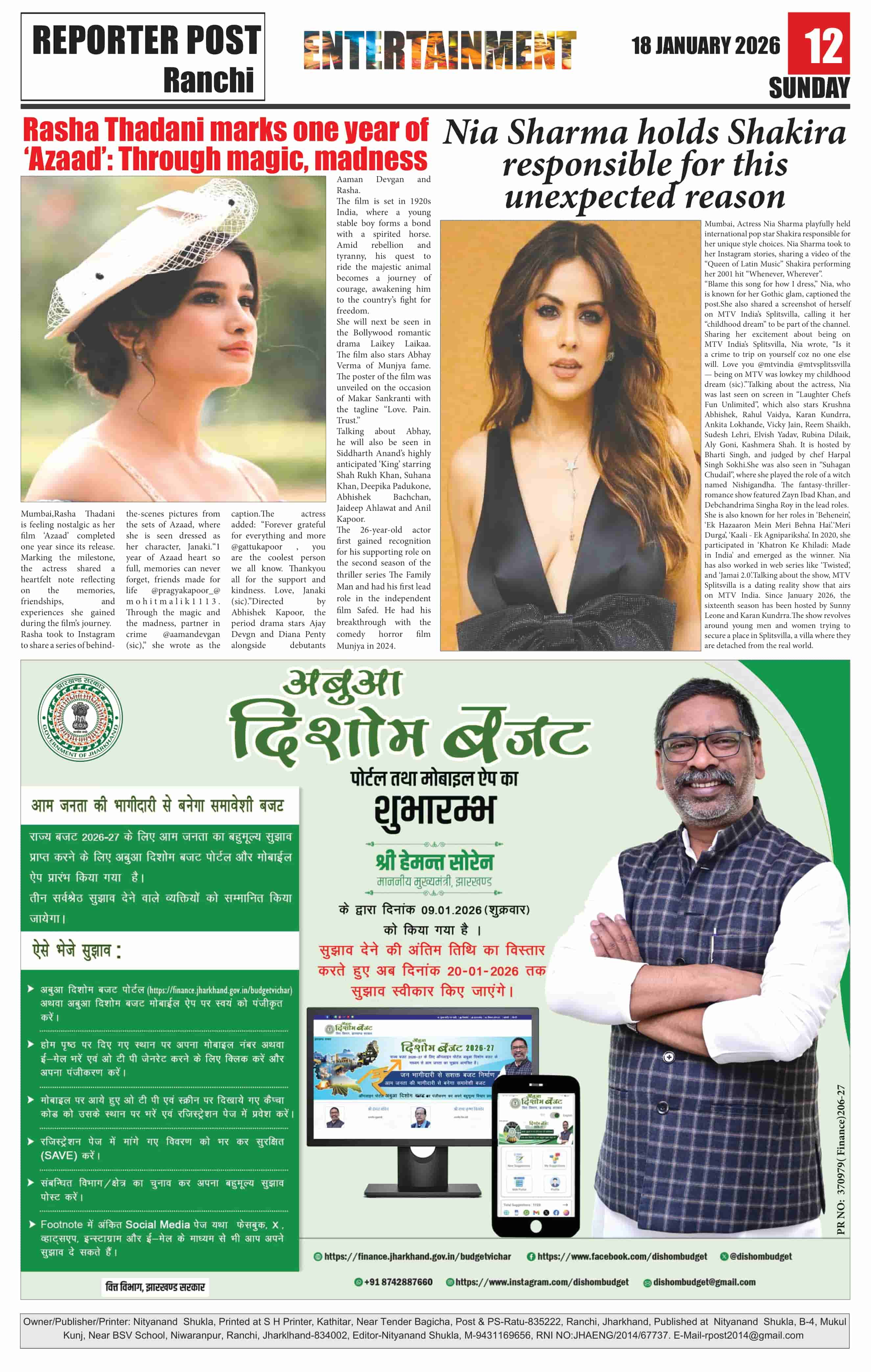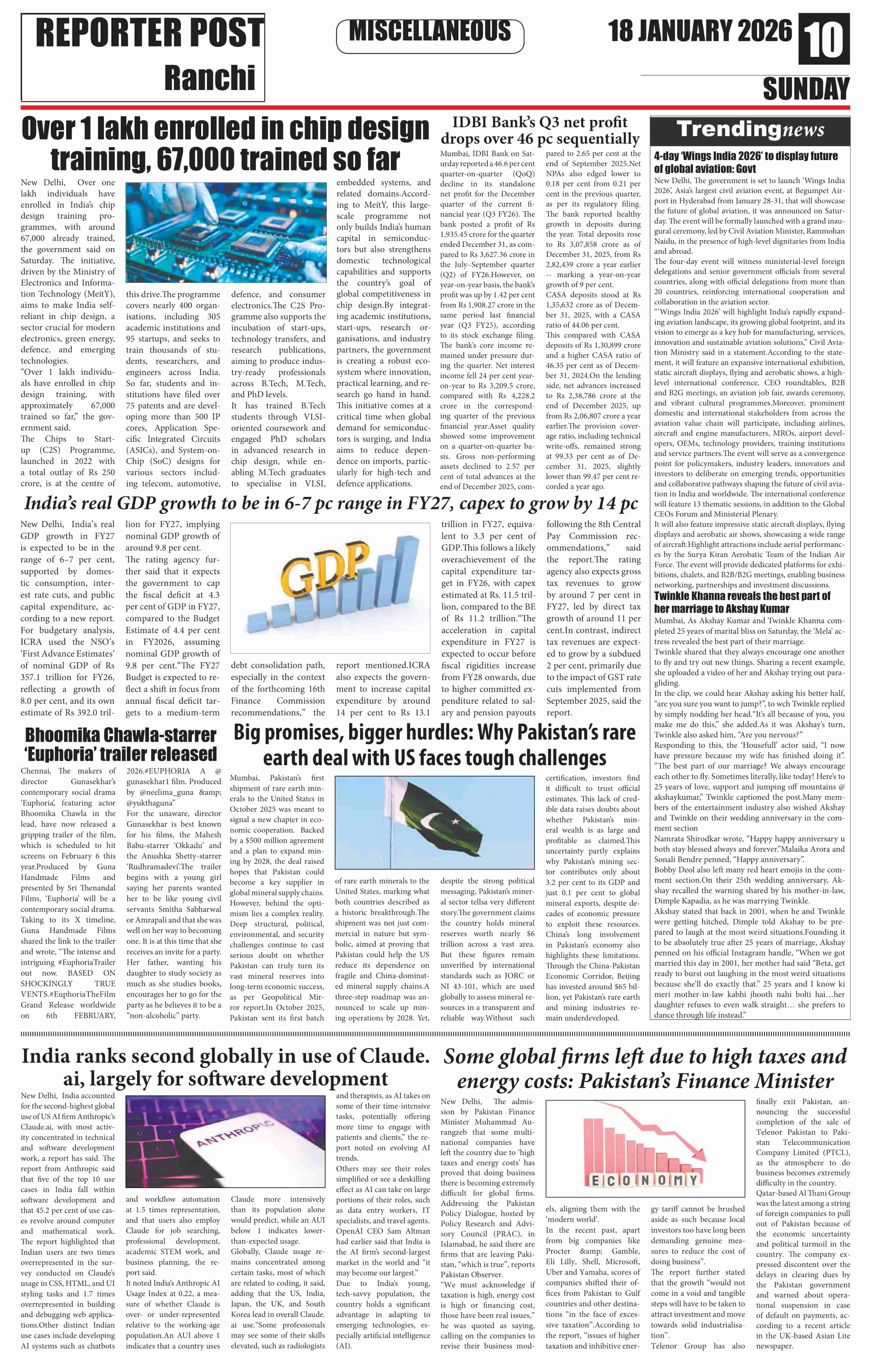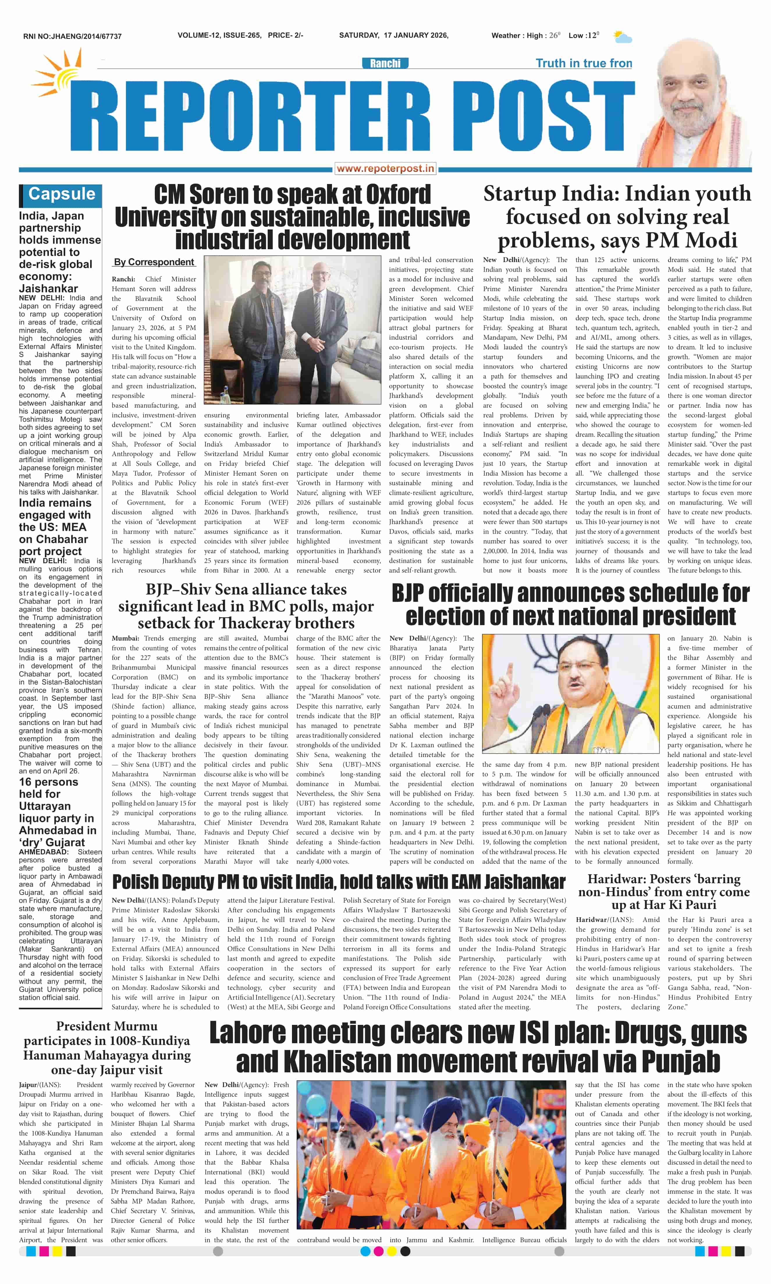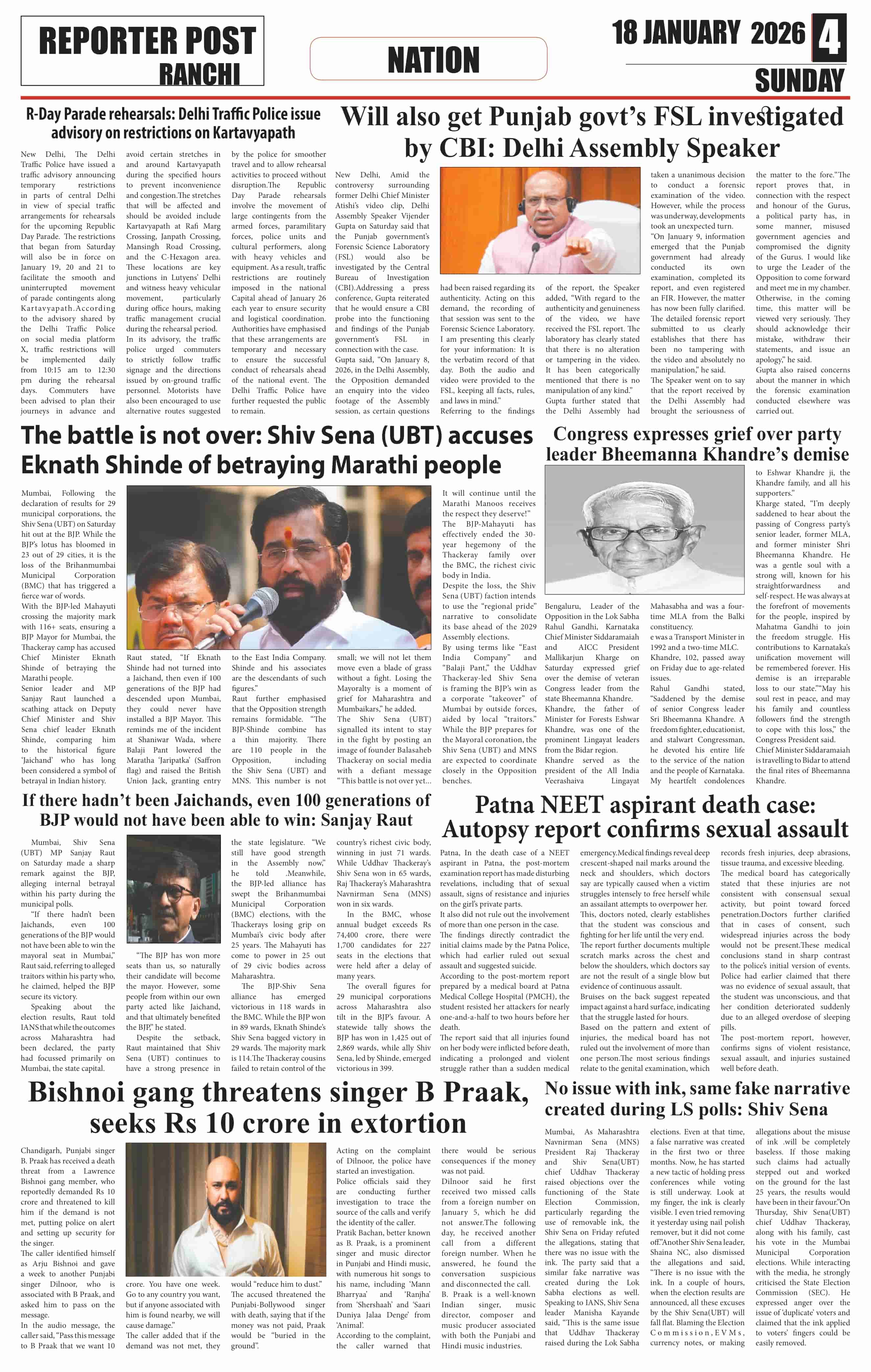 Sun, January 18, 2026 | Ranchi Edition