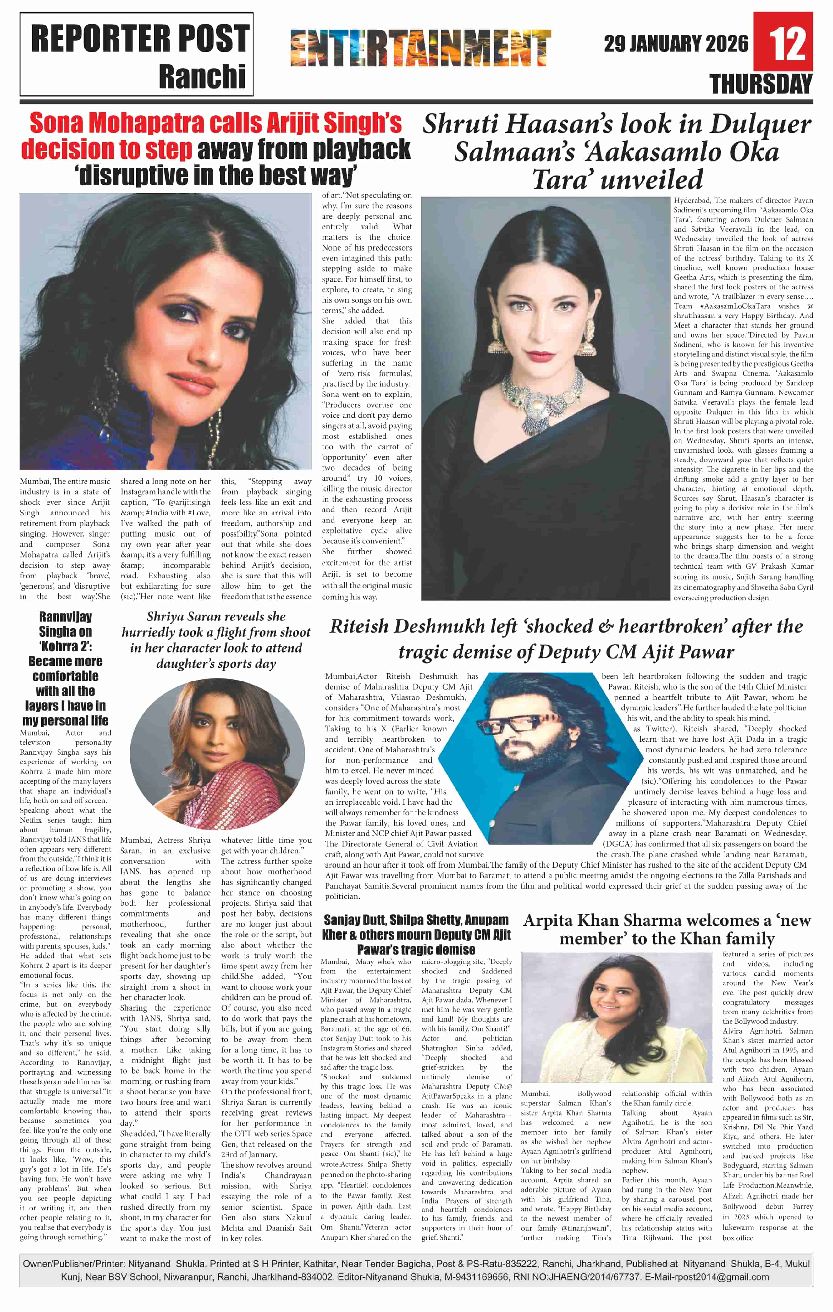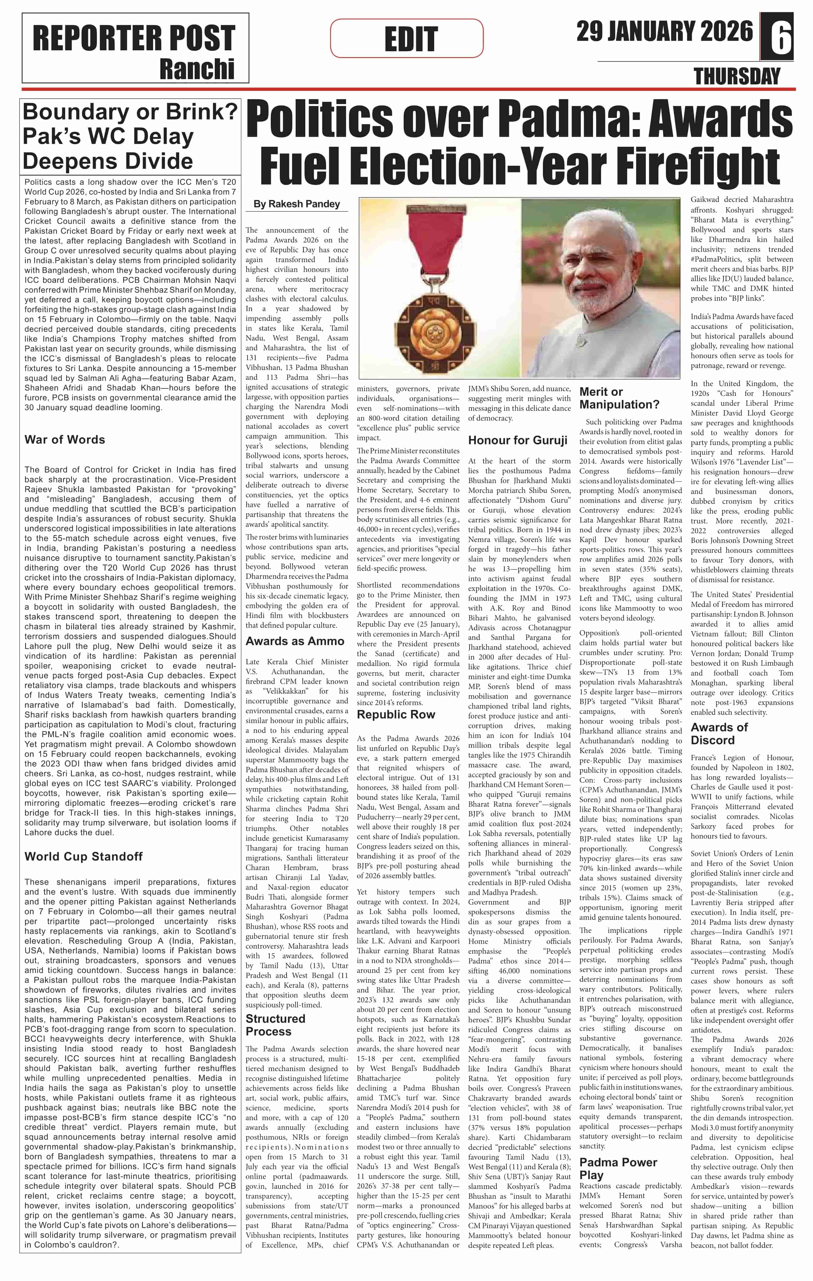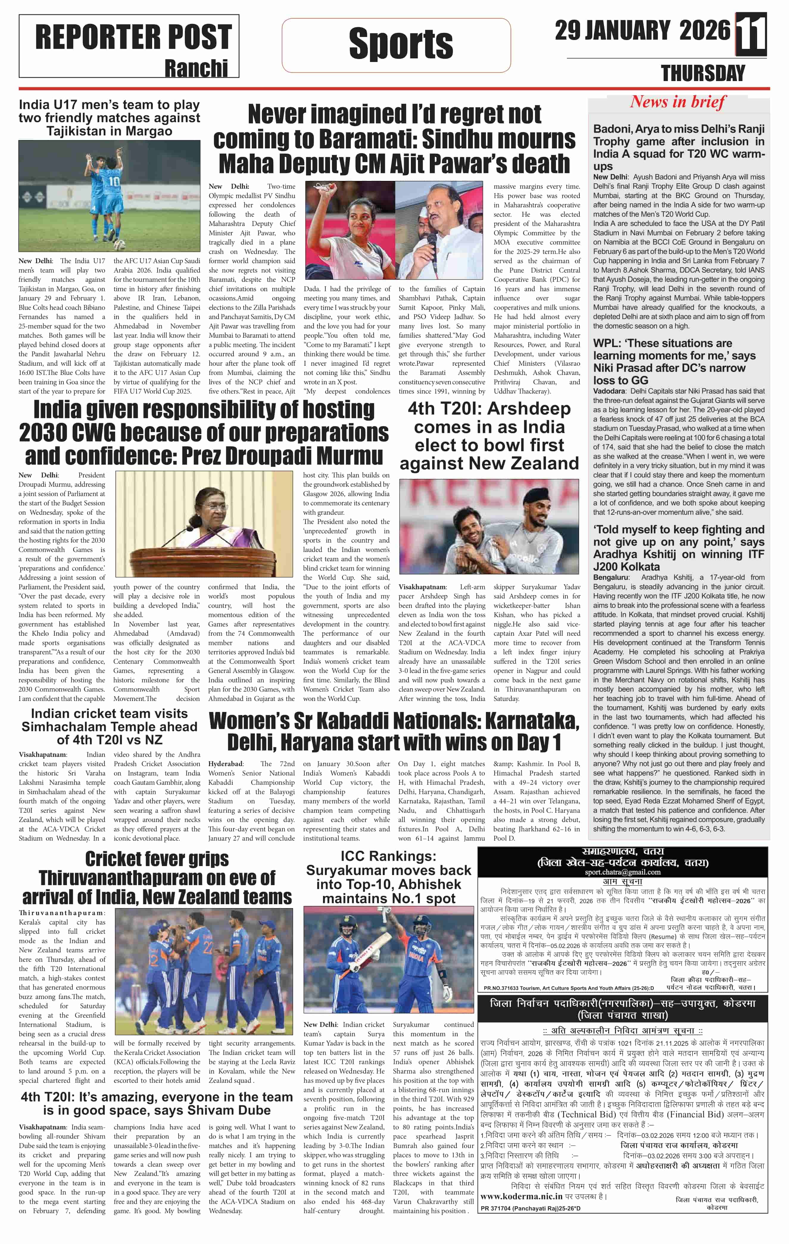 Thu, January 29, 2026 | Ranchi Edition