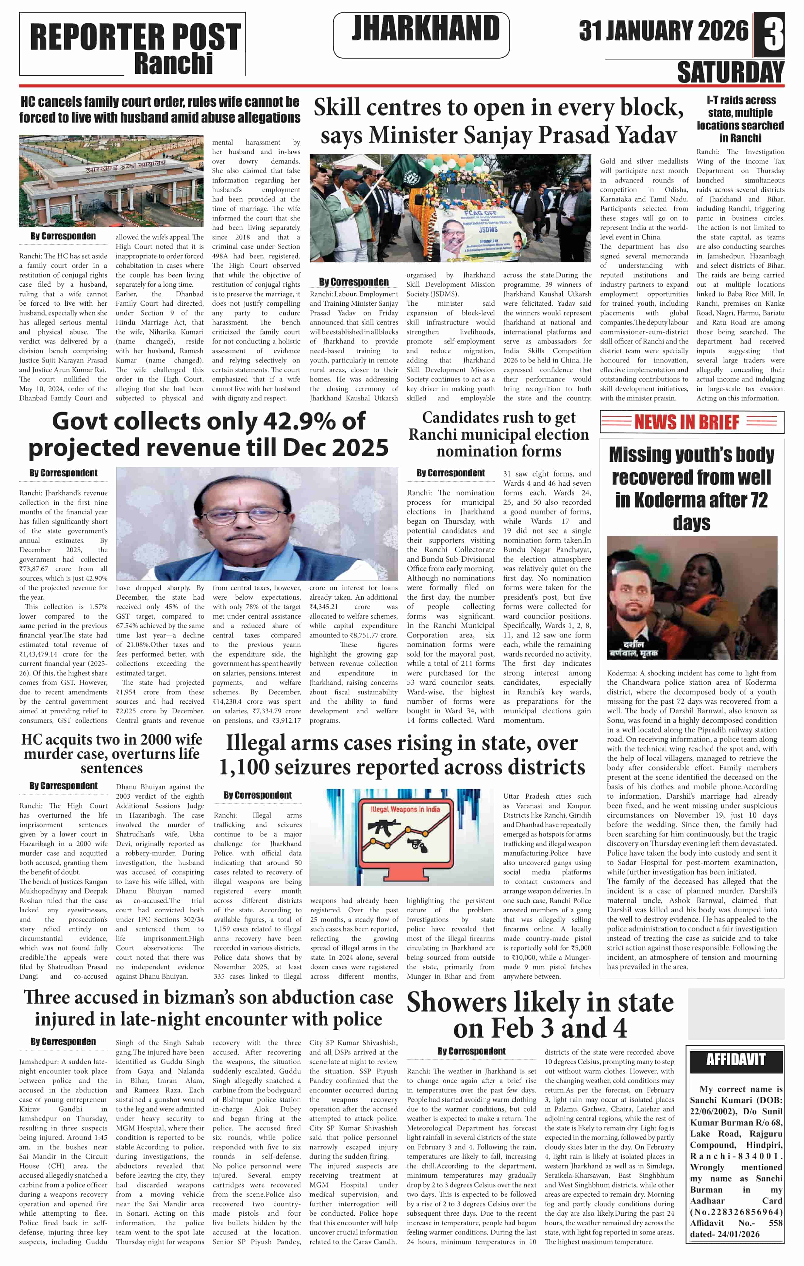 Sat, January 31, 2026 | Ranchi Edition