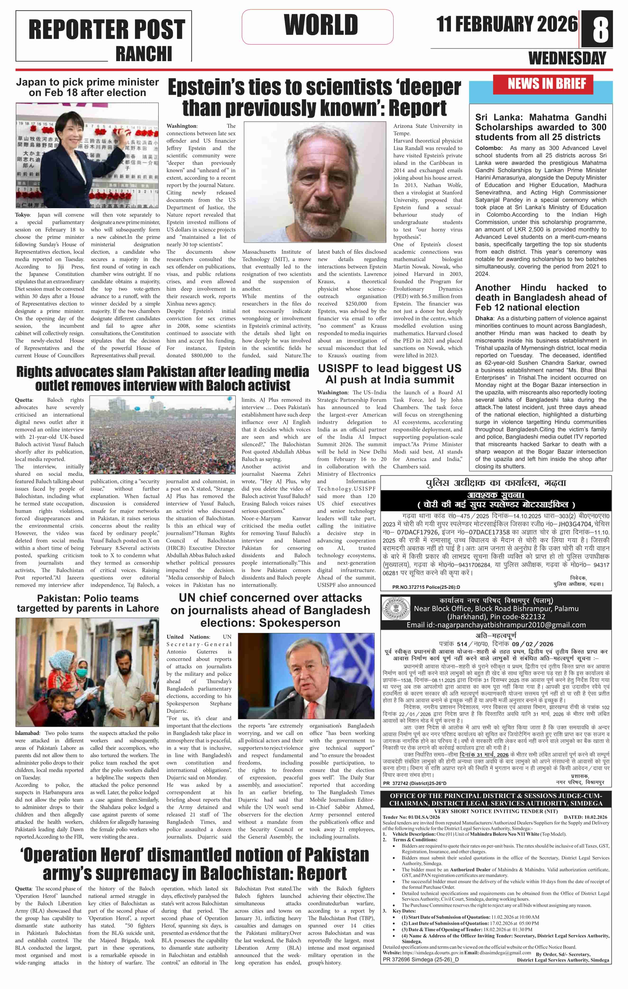 Wed, February 11, 2026 | Ranchi Edition