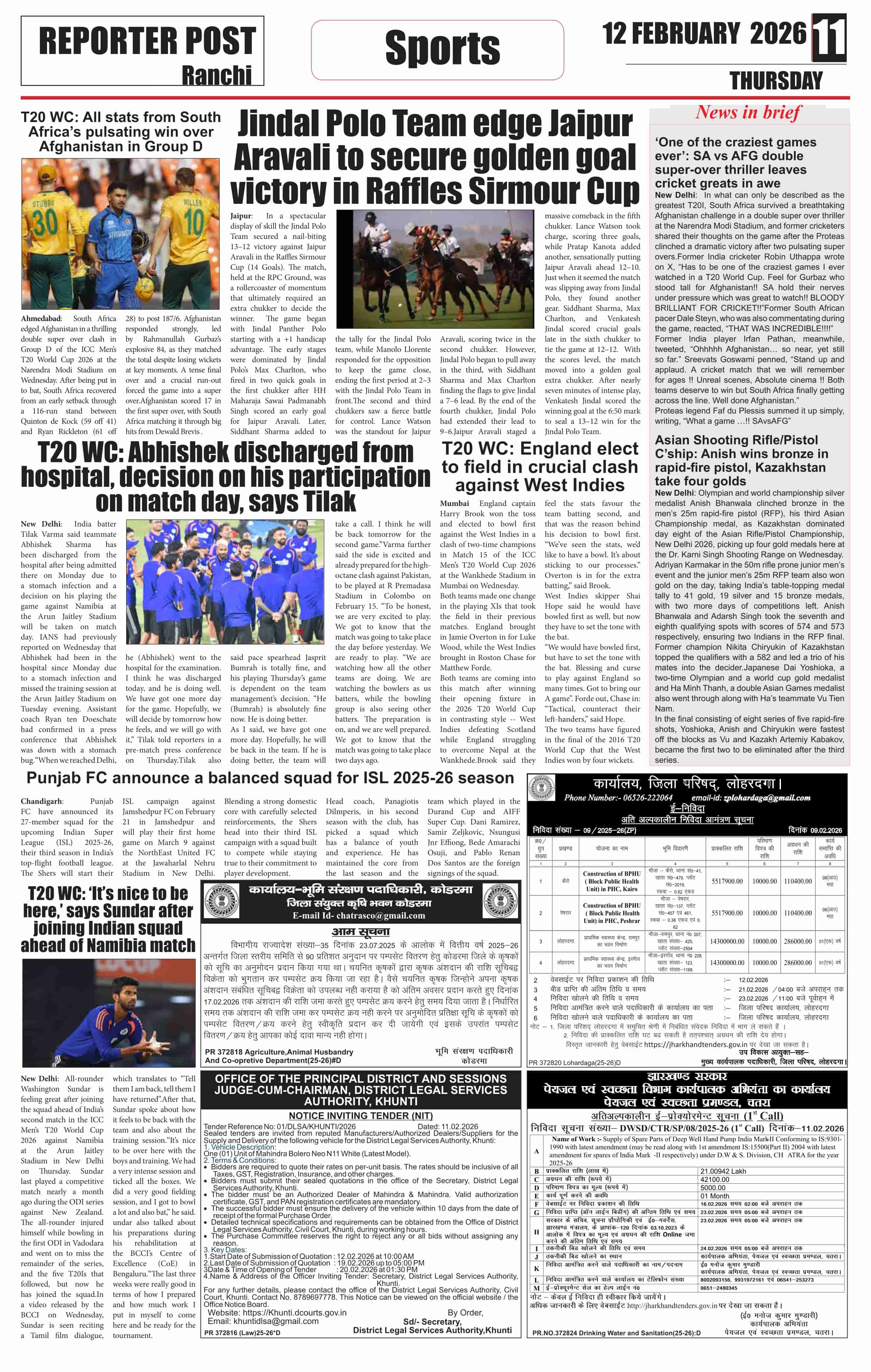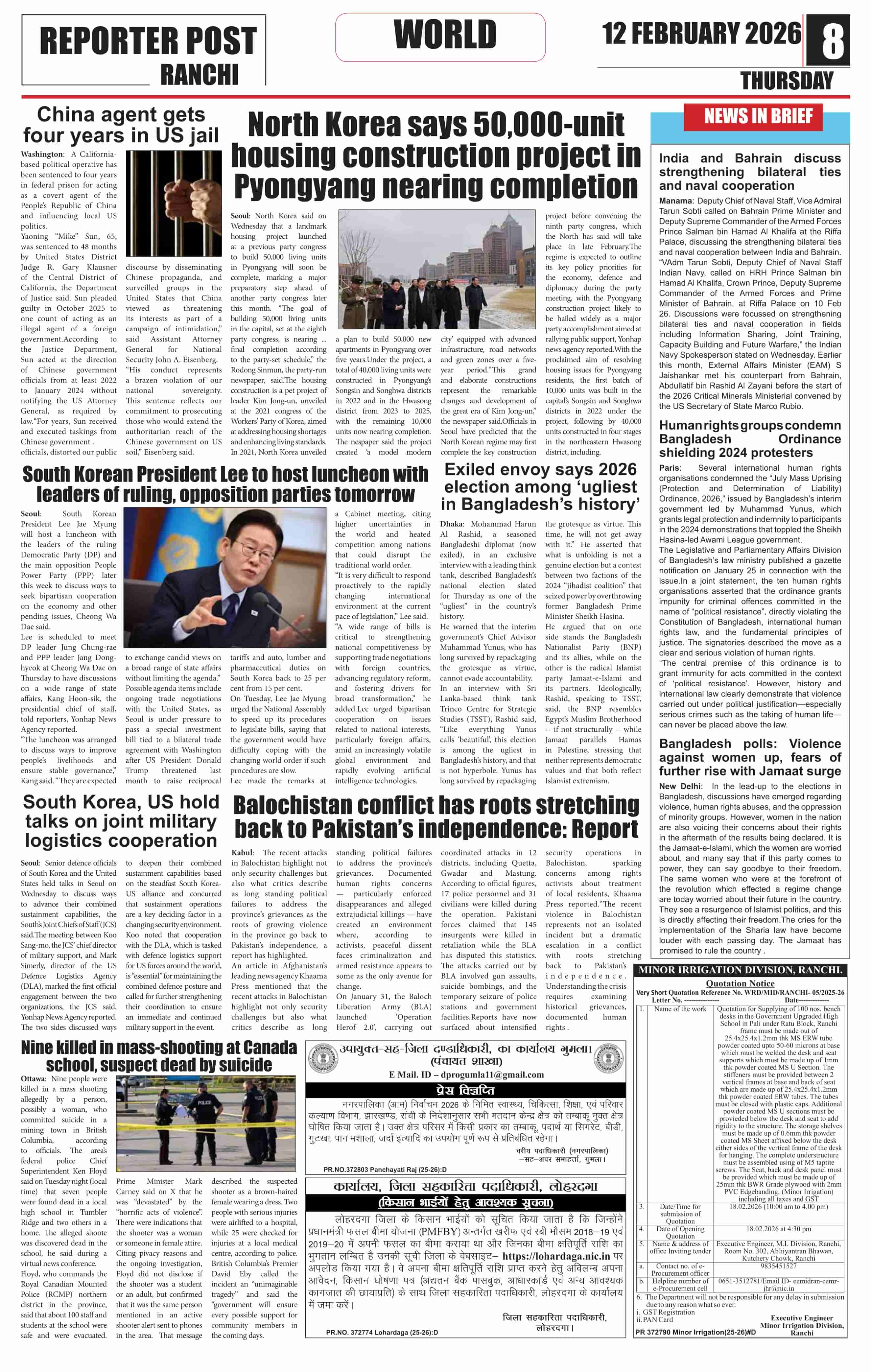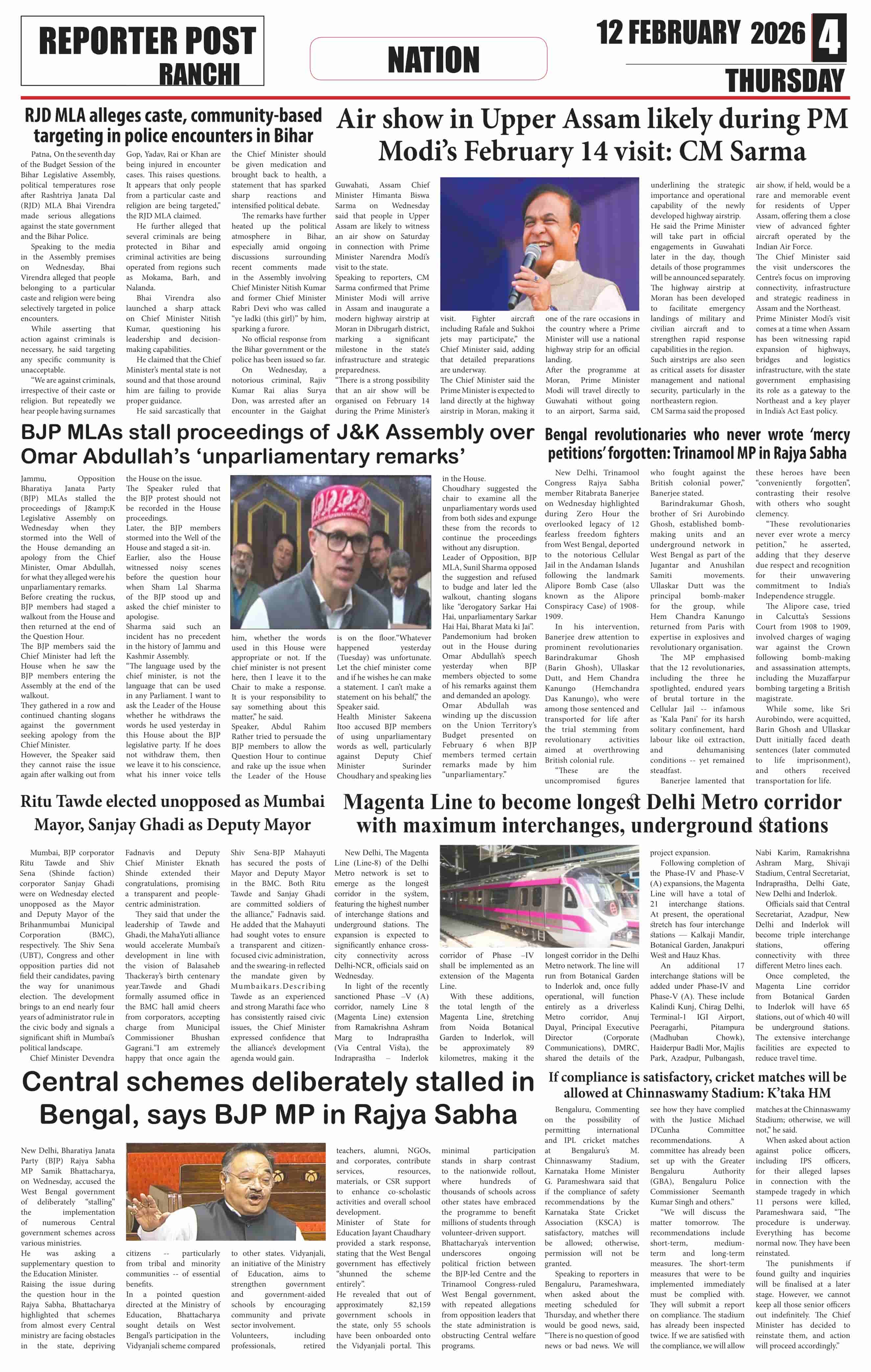 Thu, February 12, 2026 | Ranchi Edition