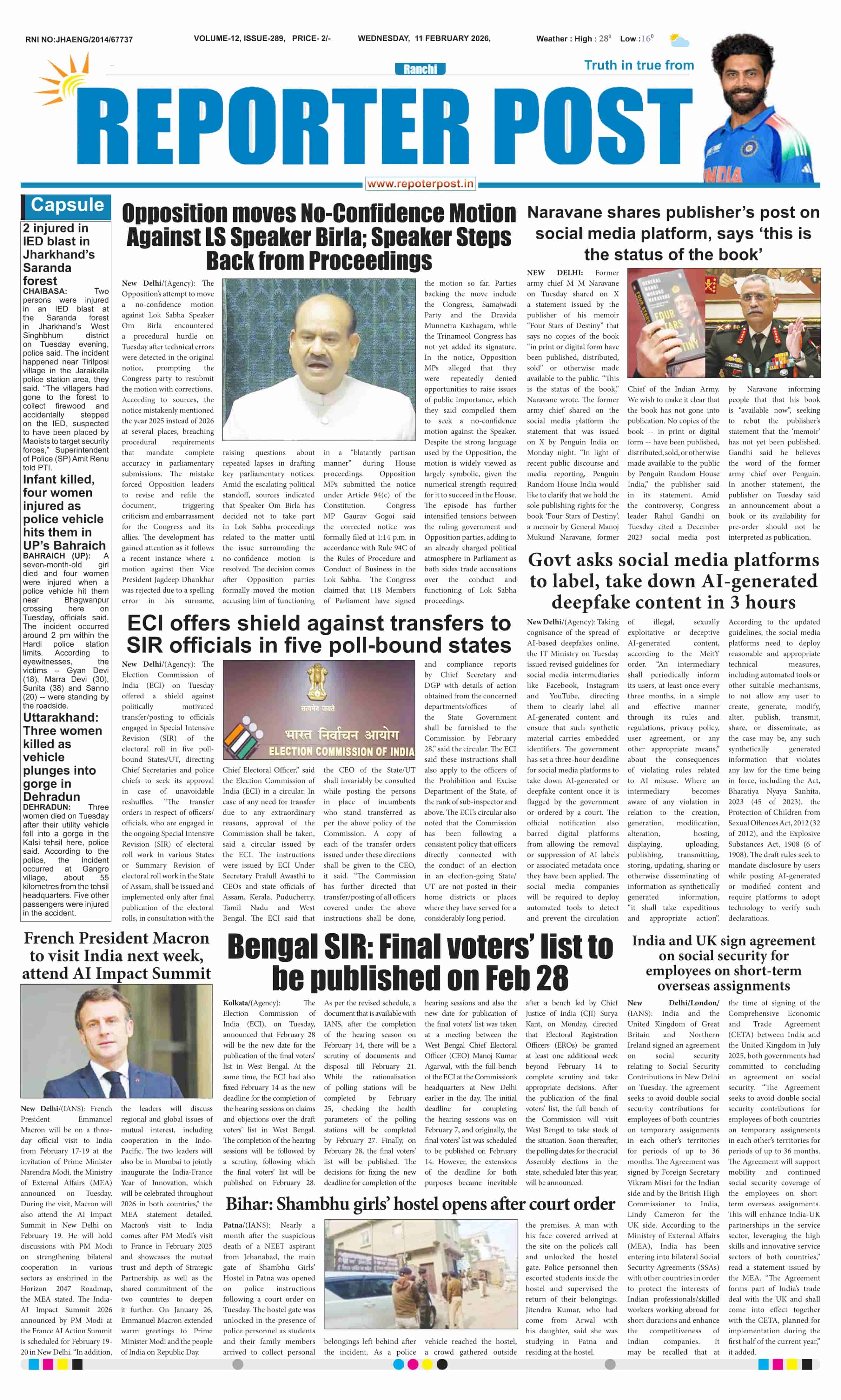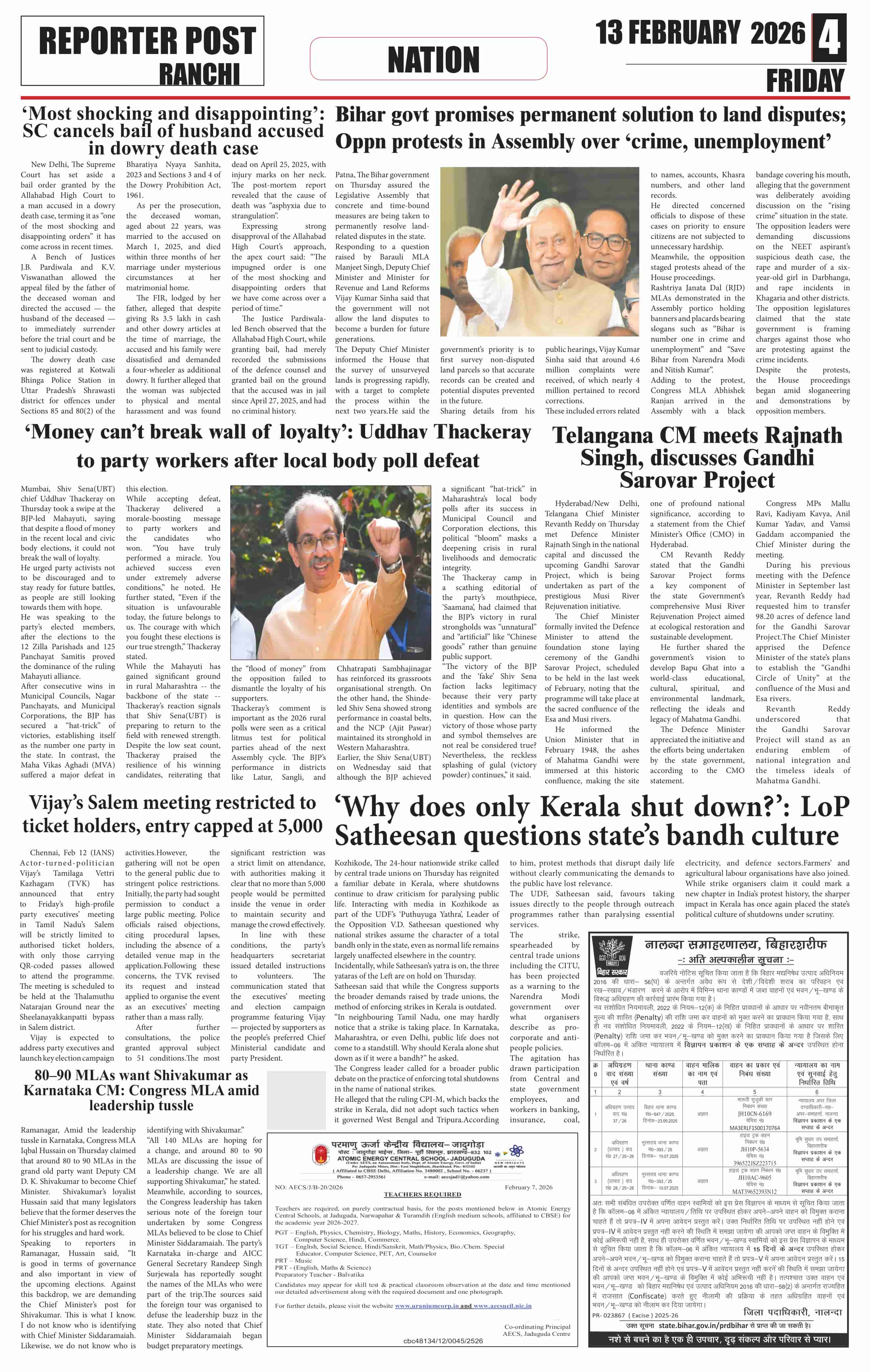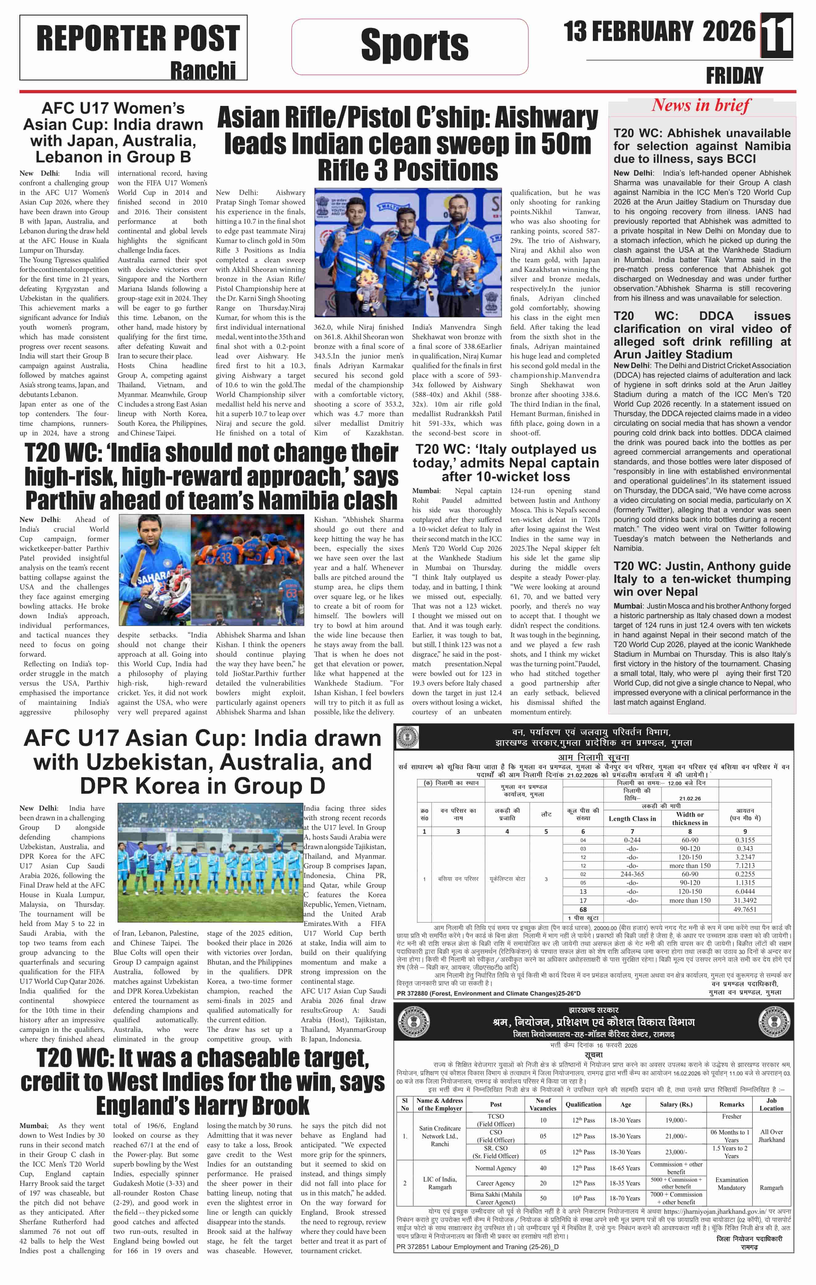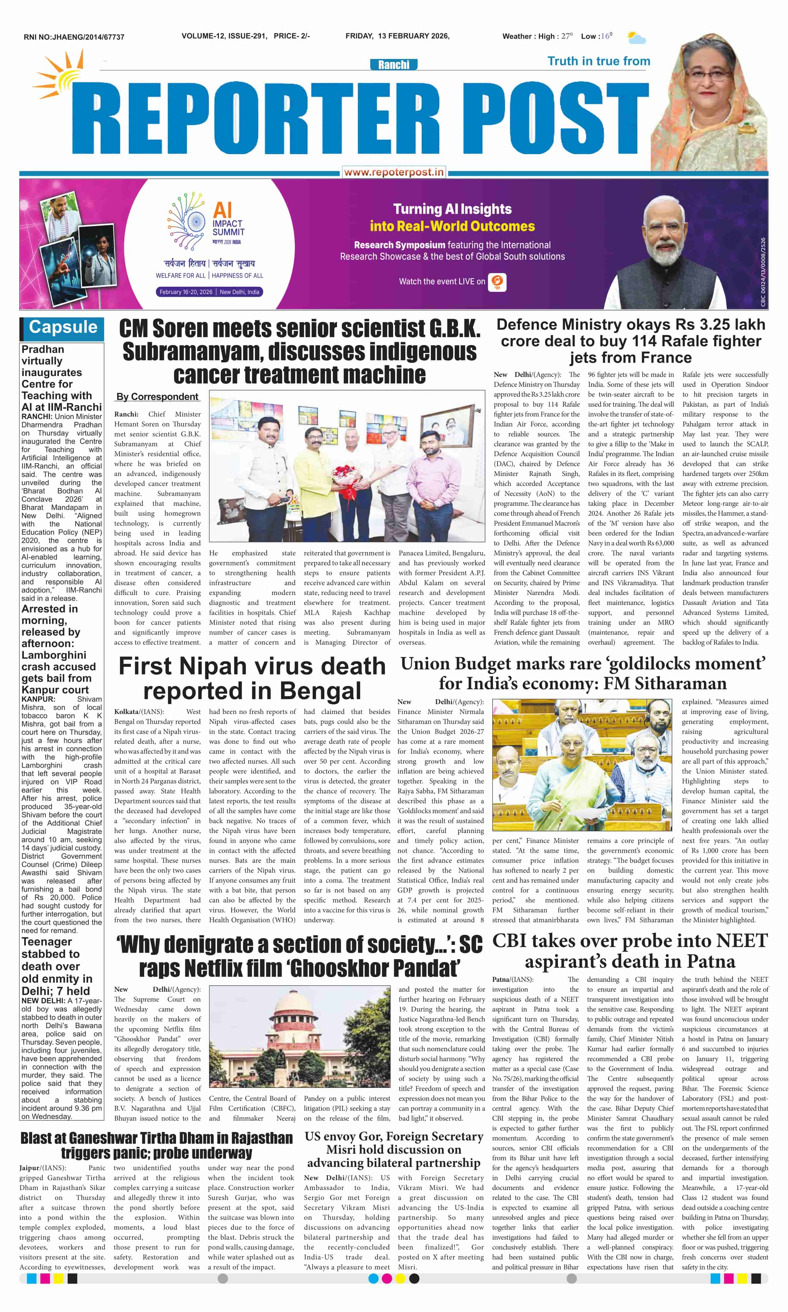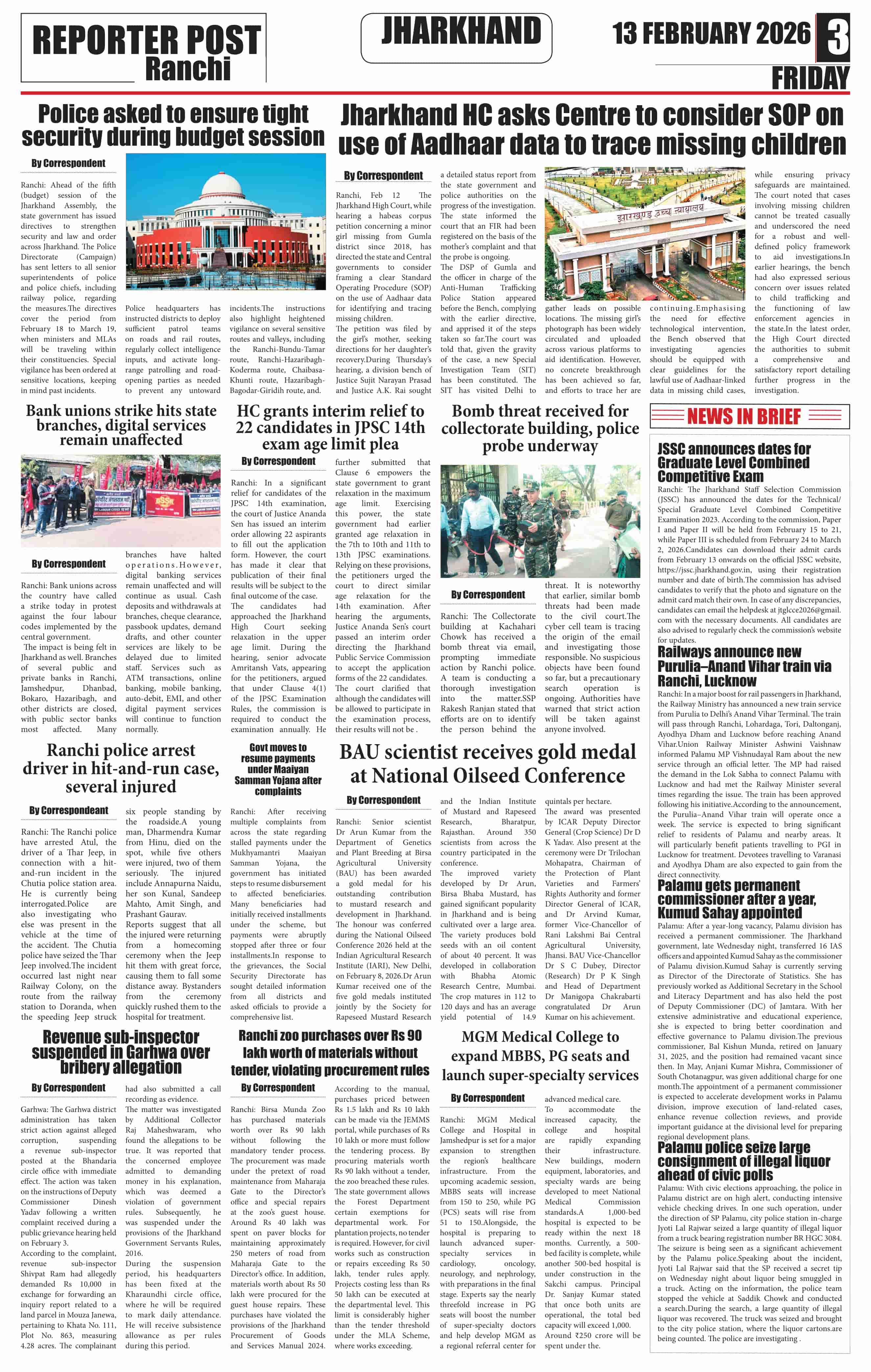 Fri, February 13, 2026 | Ranchi Edition