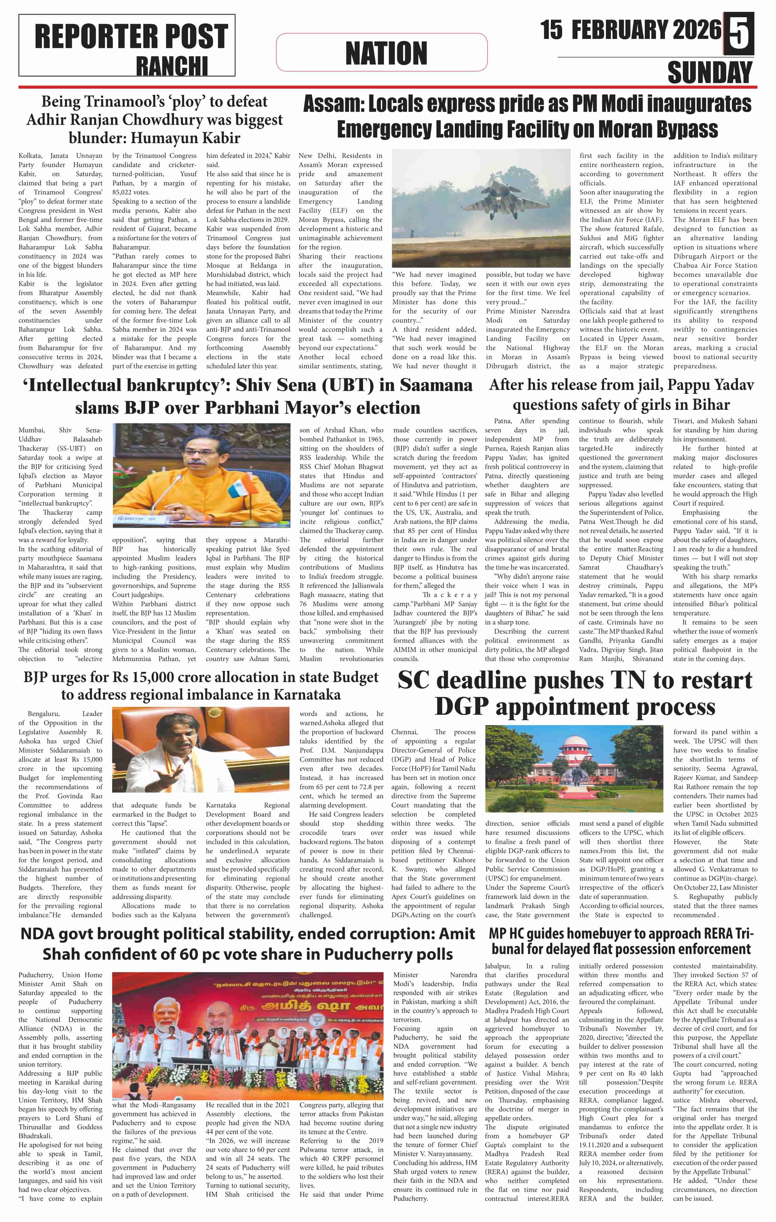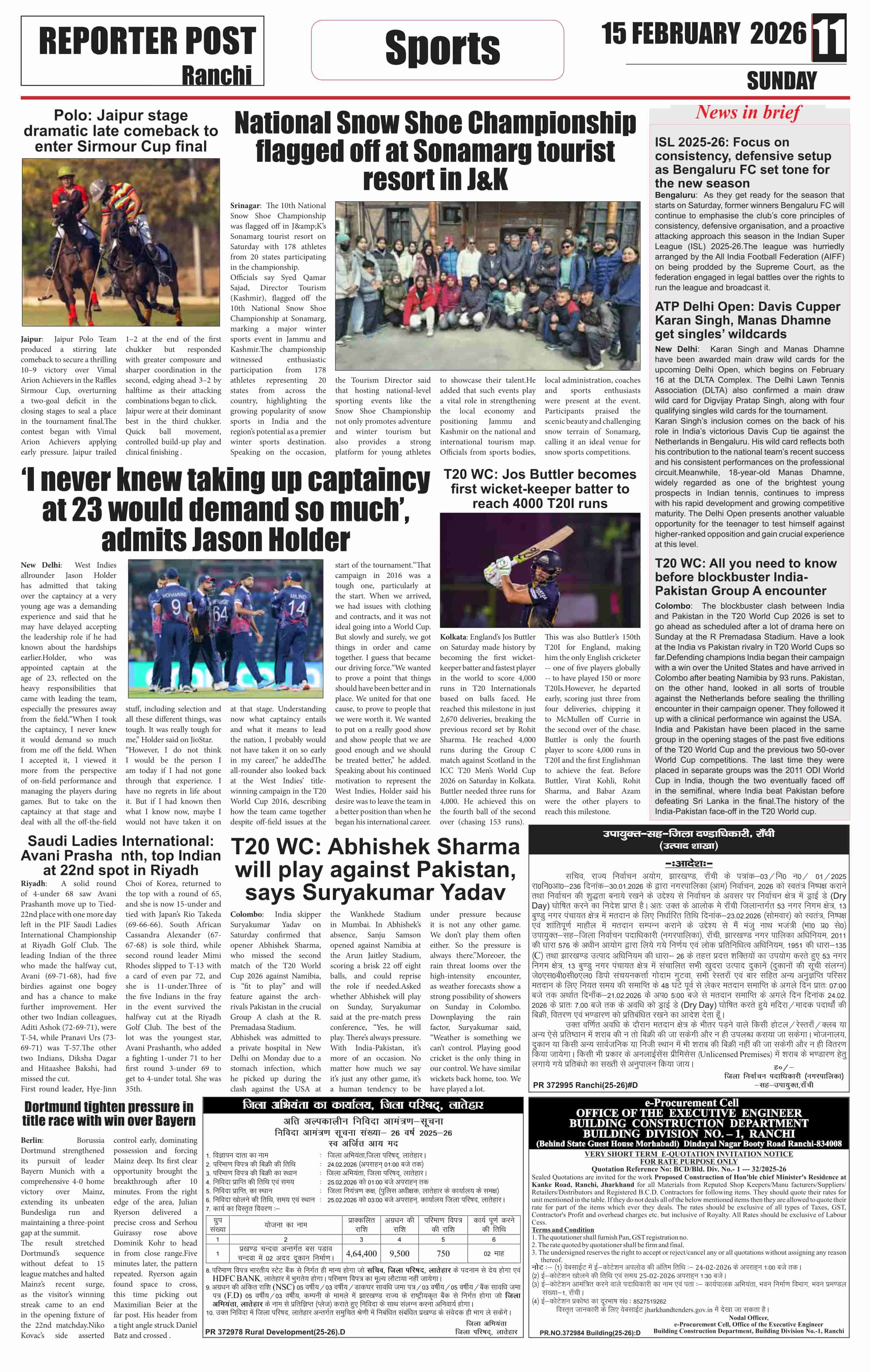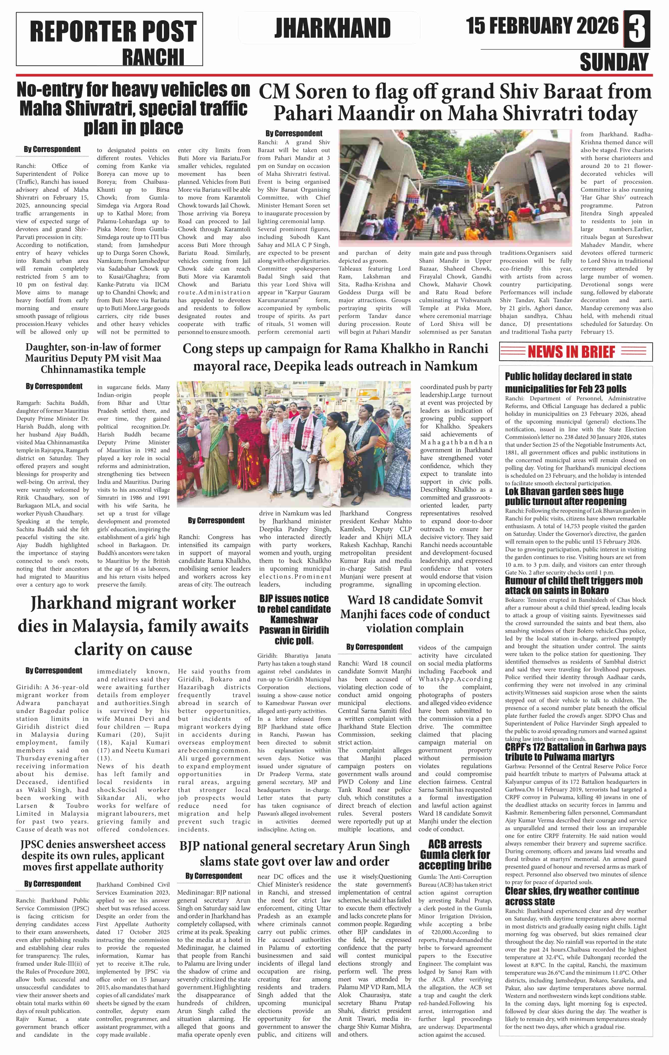 Sun, February 15, 2026 | Ranchi Edition
