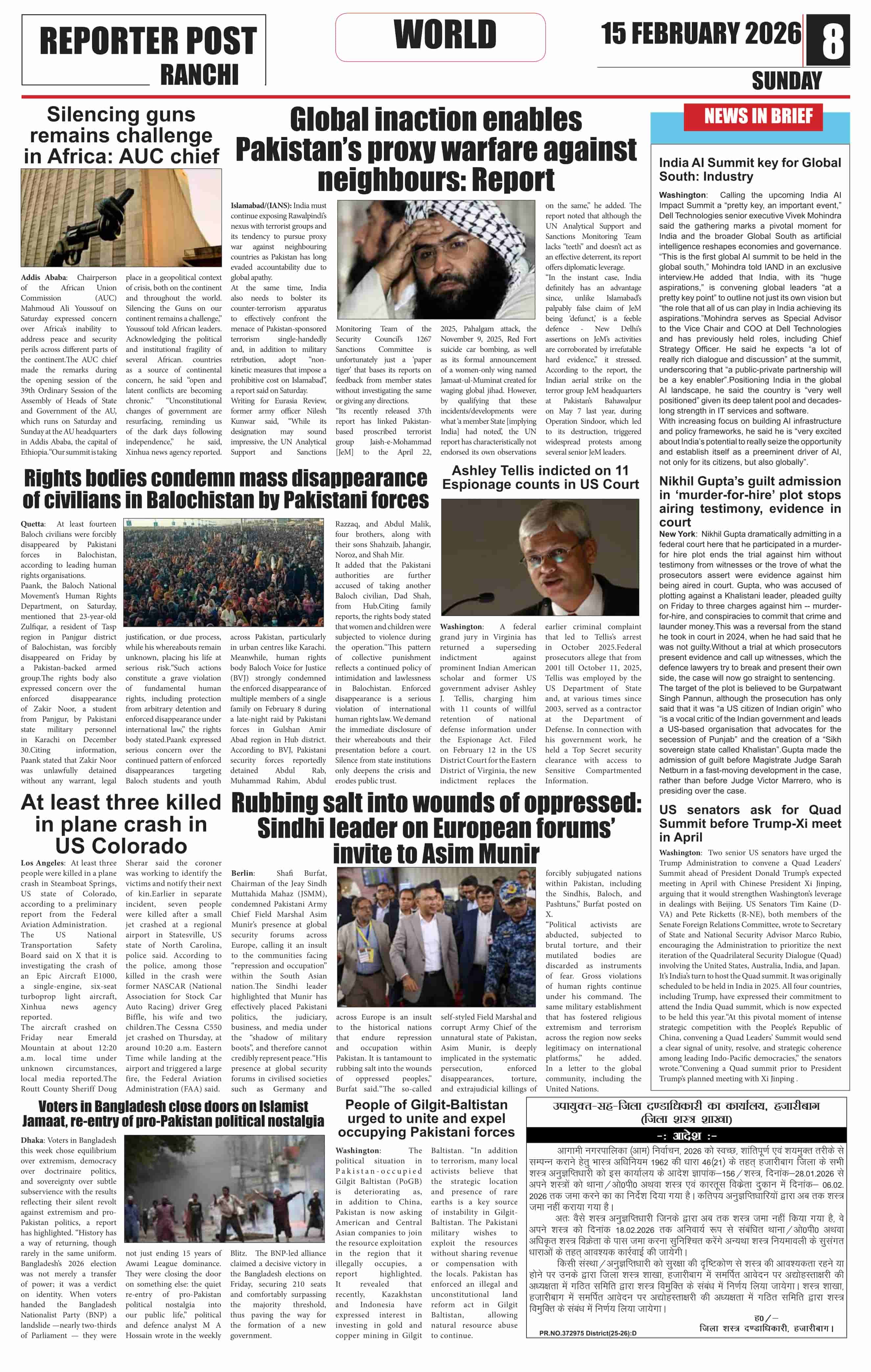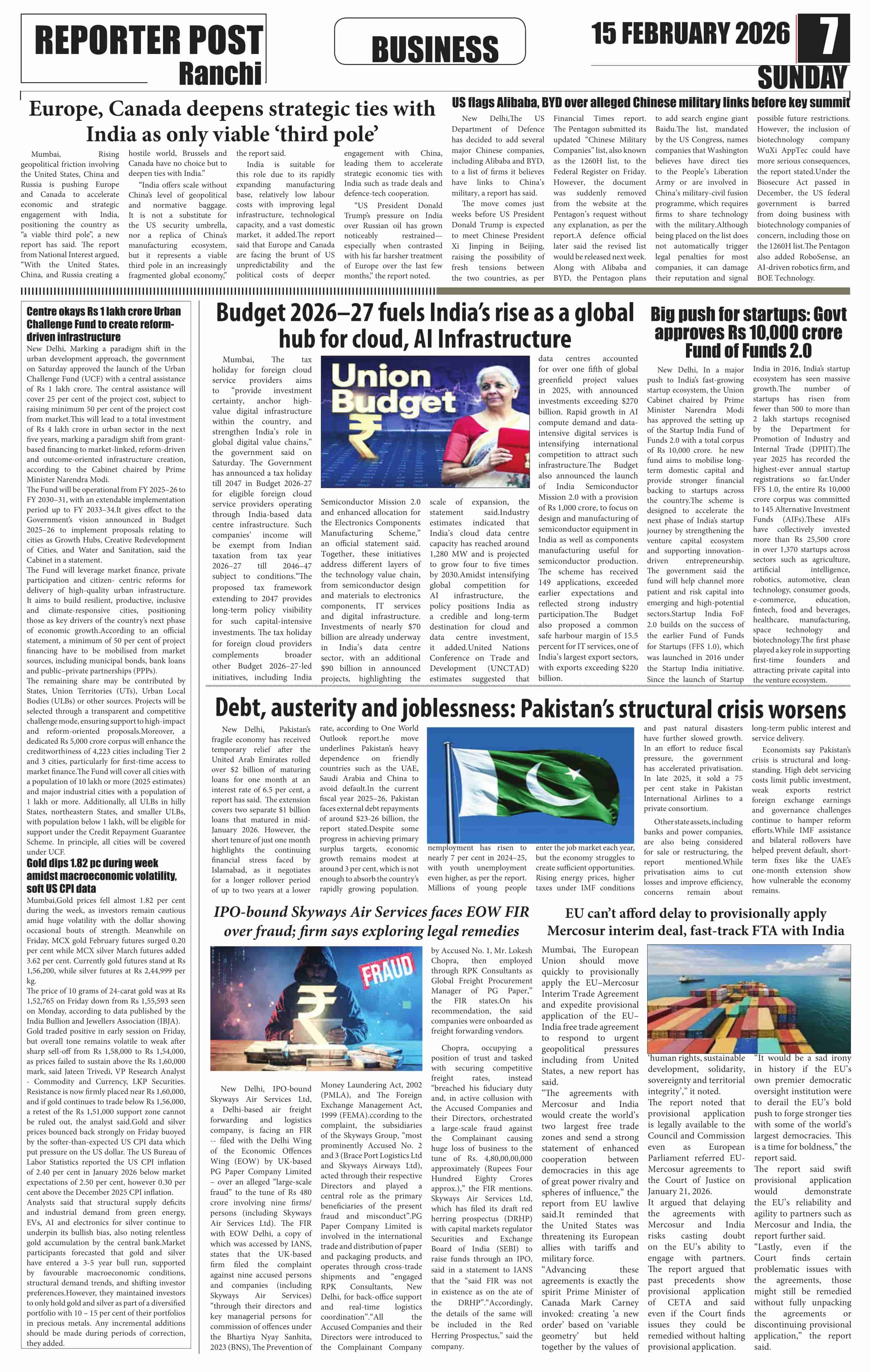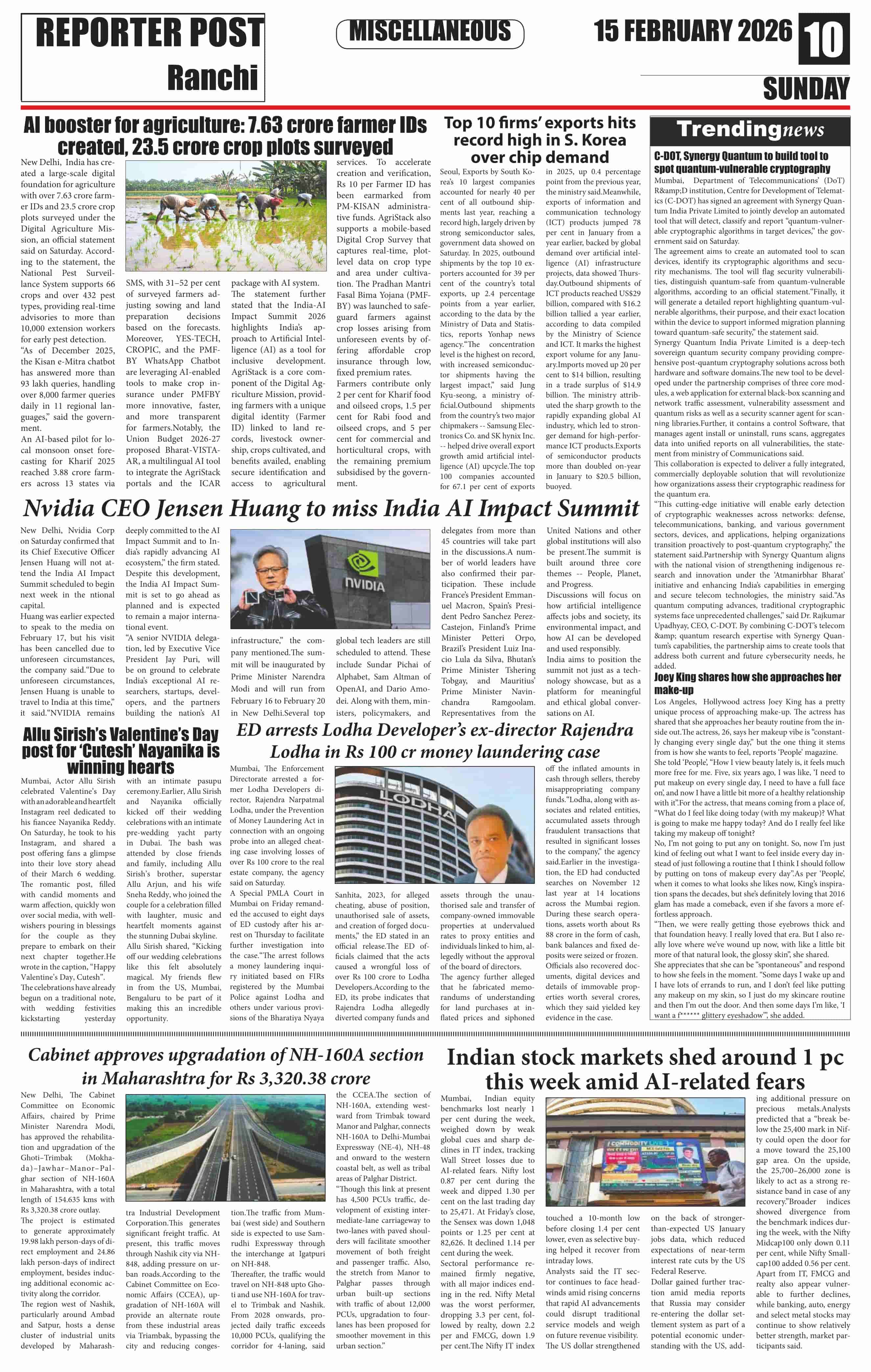 Sun, February 15, 2026 | Ranchi Edition