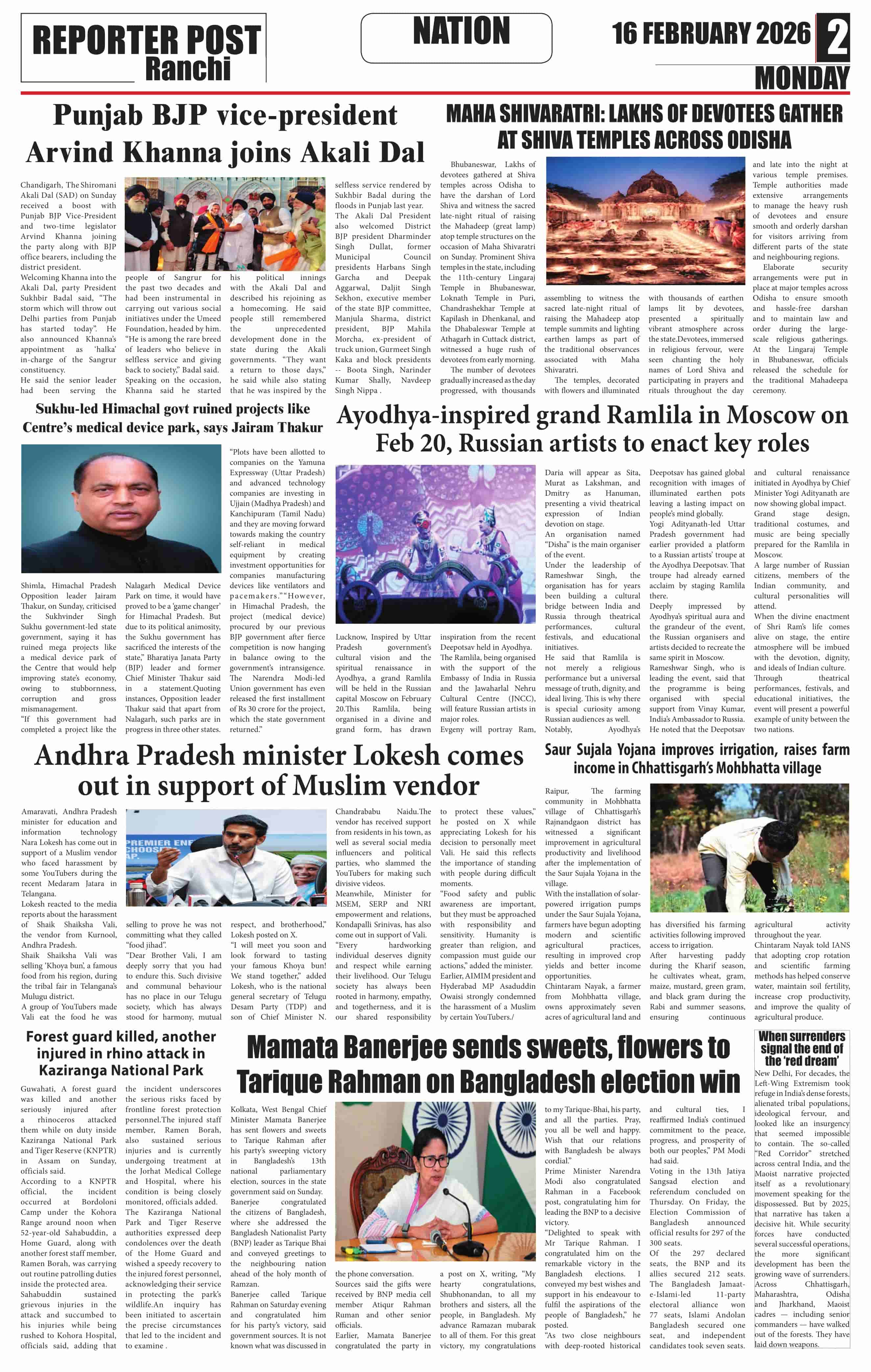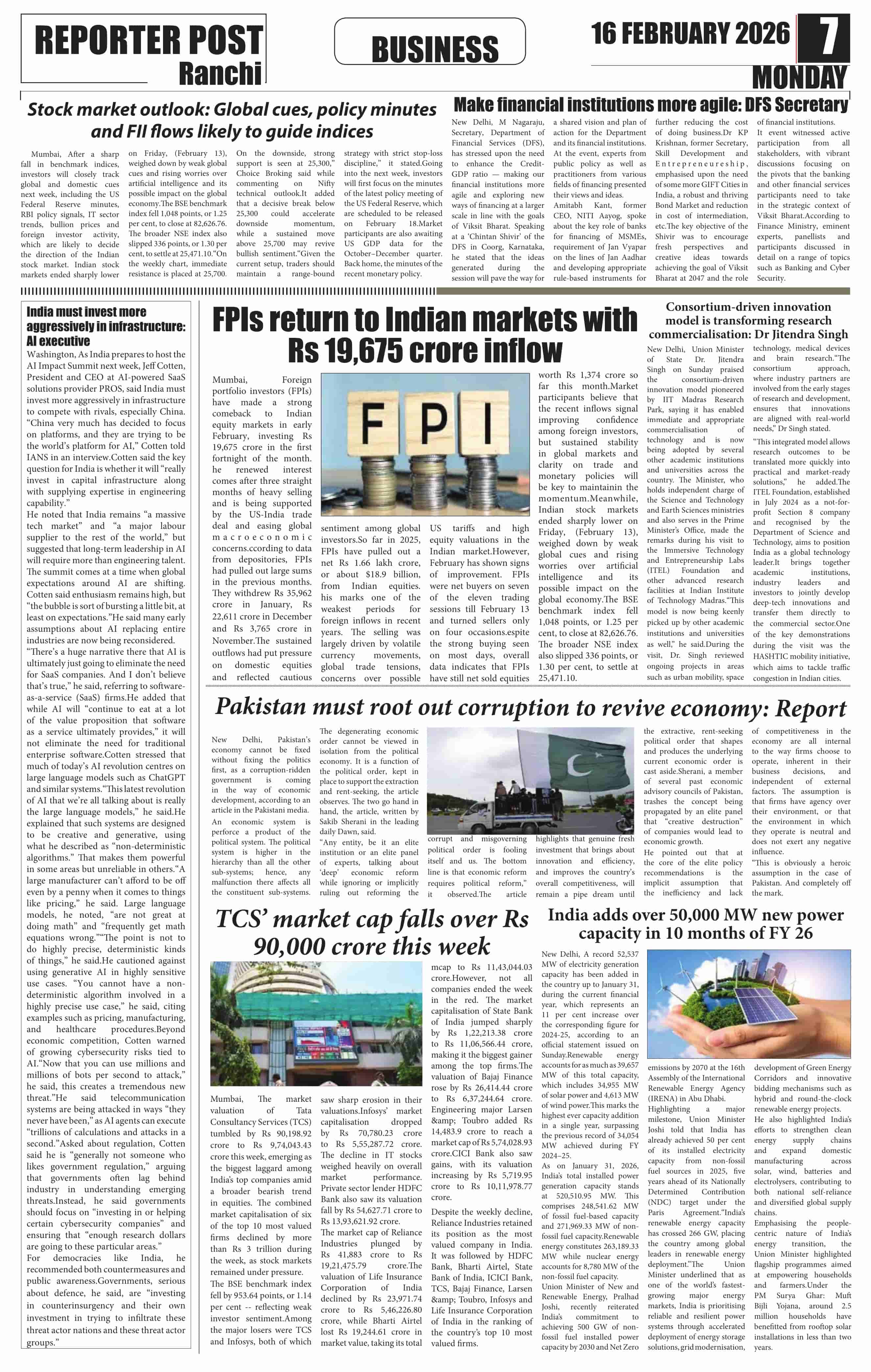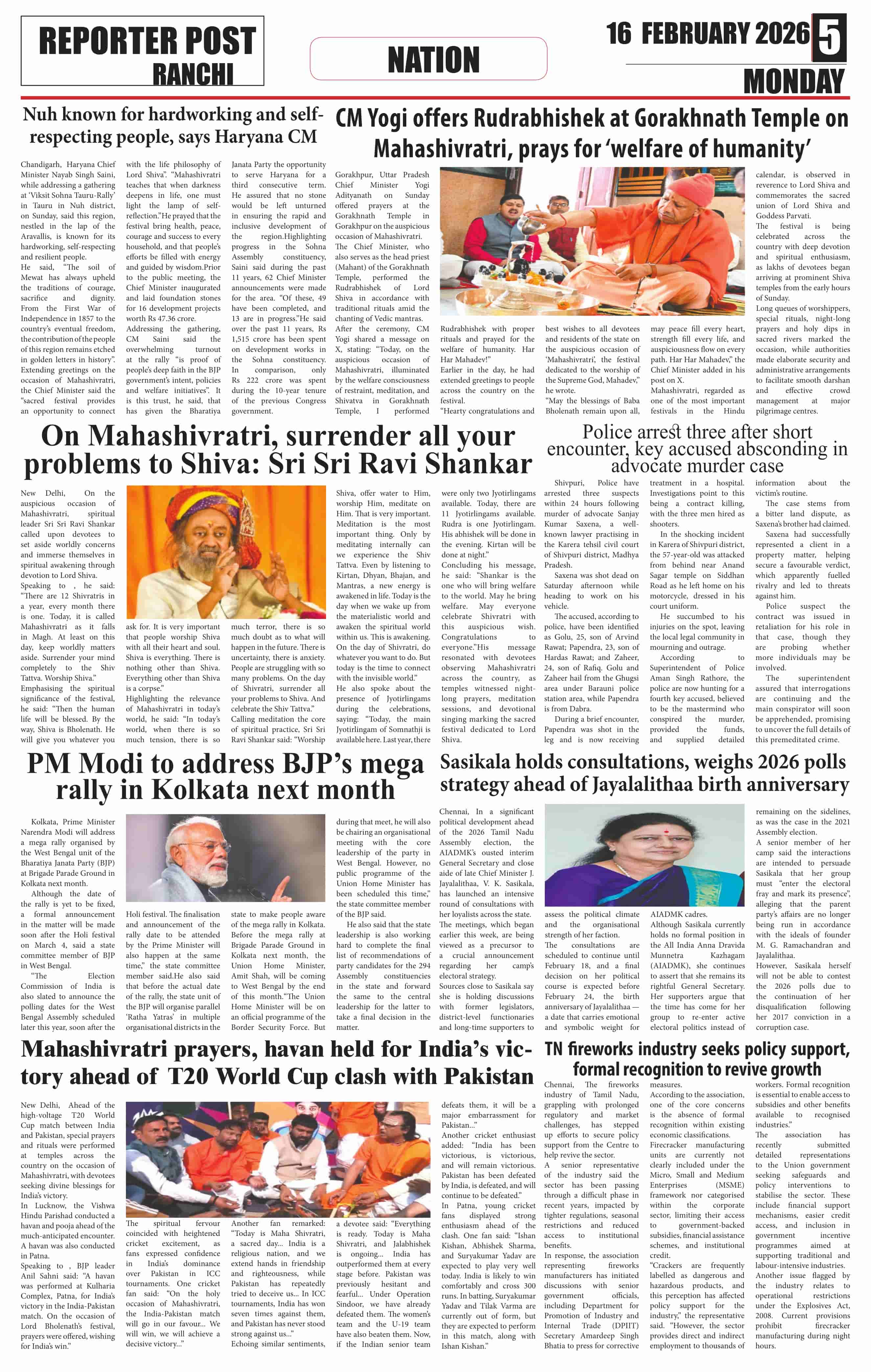 Mon, February 16, 2026 | Ranchi Edition