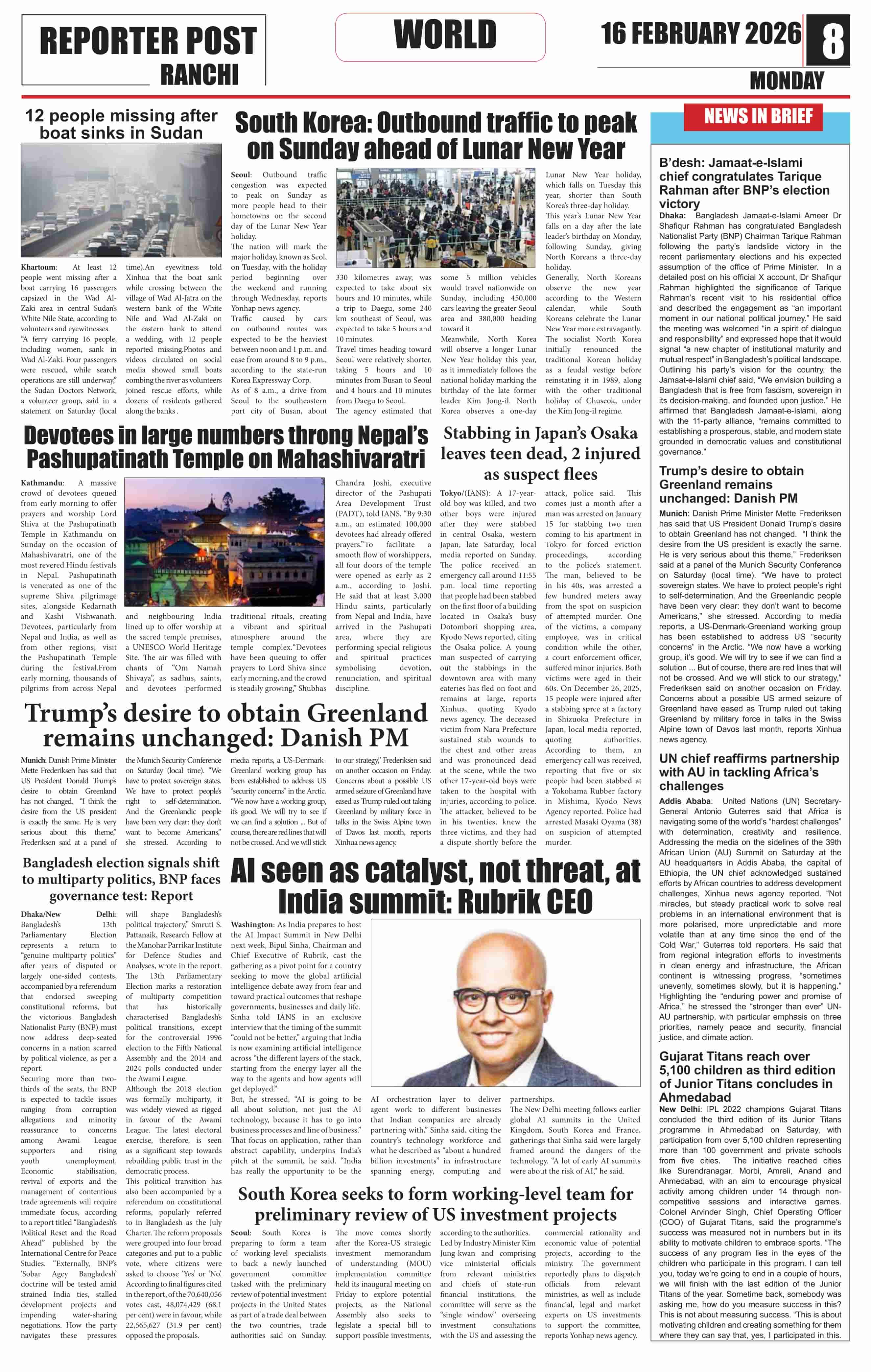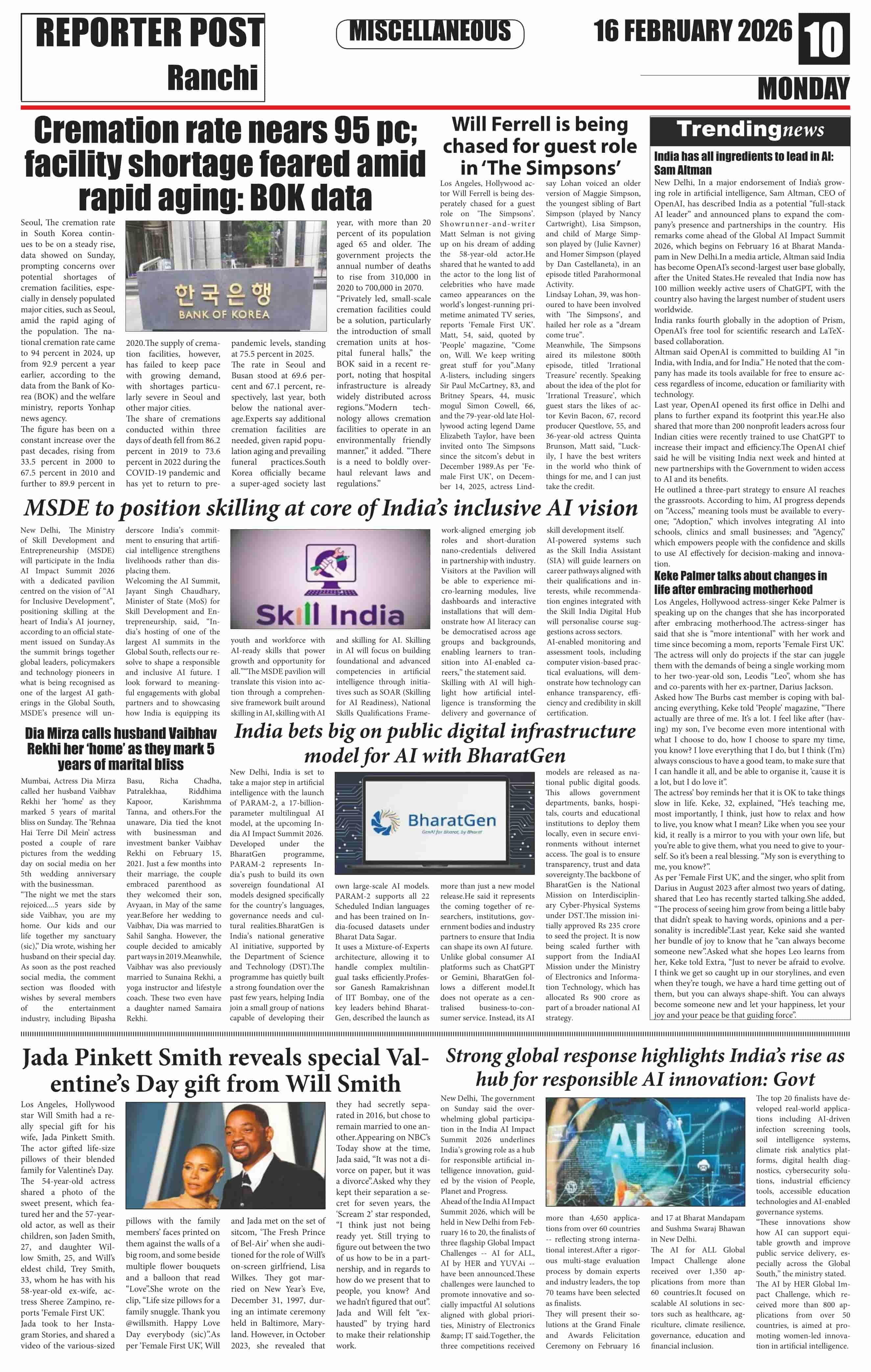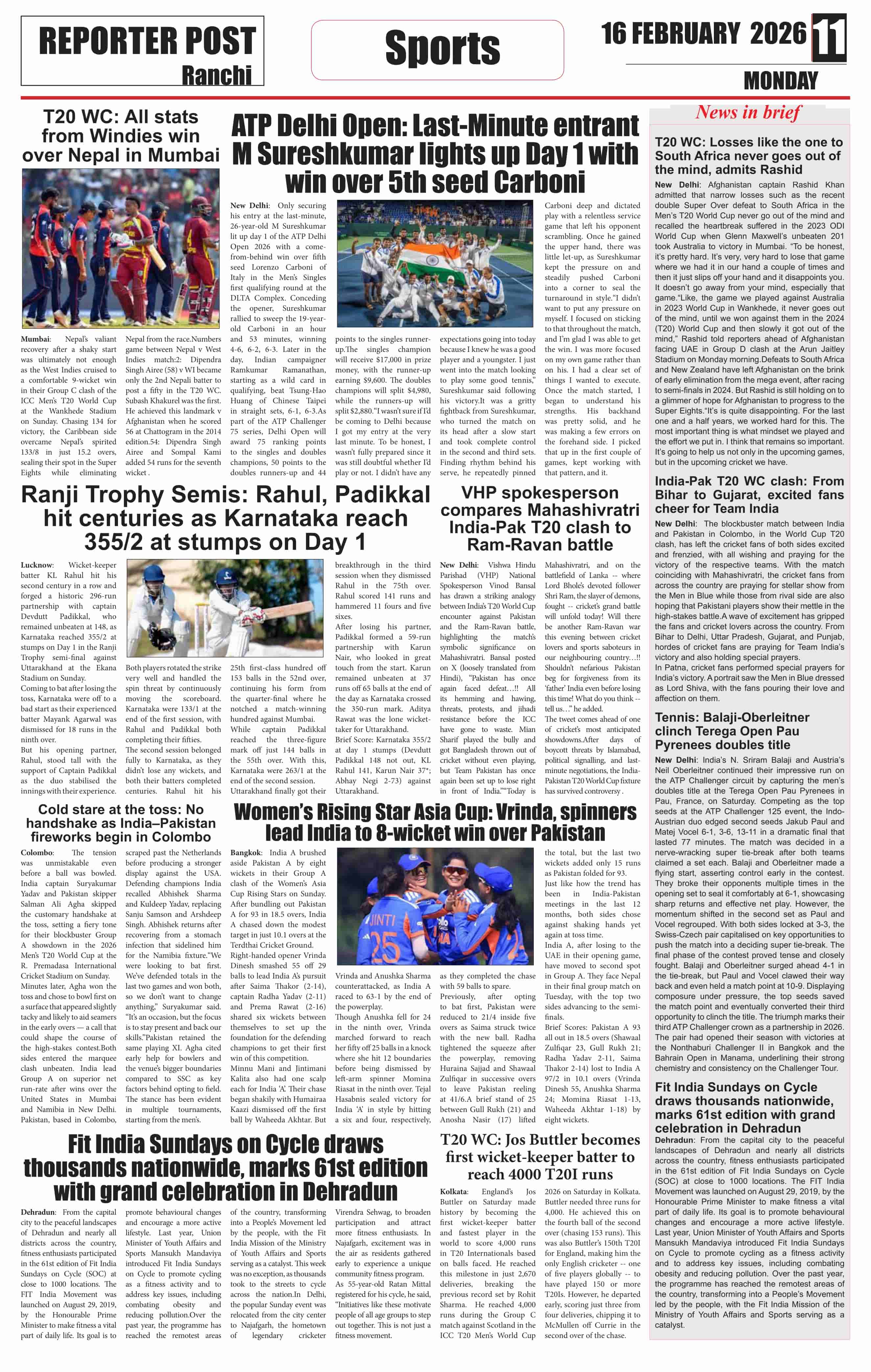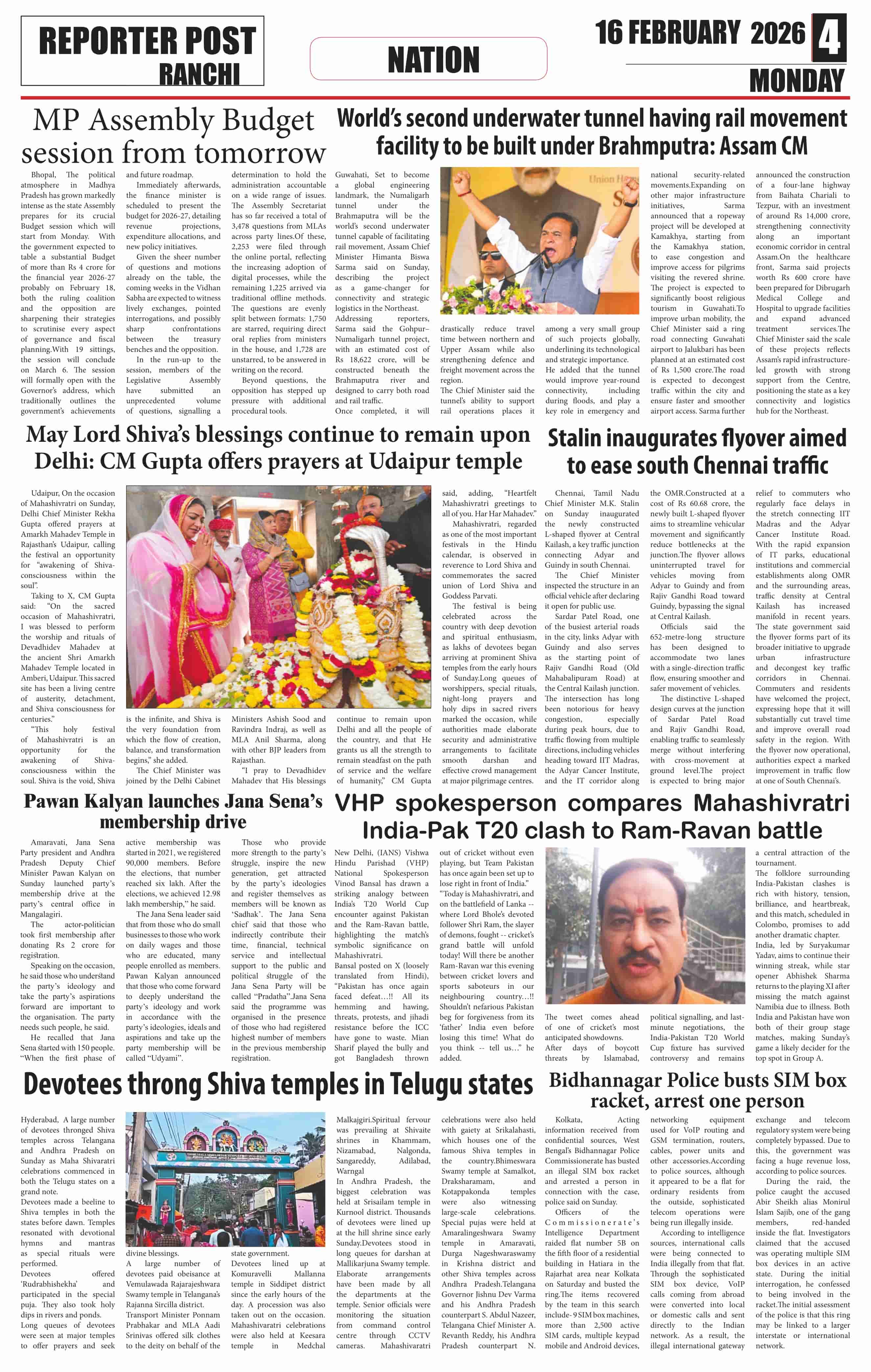 Mon, February 16, 2026 | Ranchi Edition