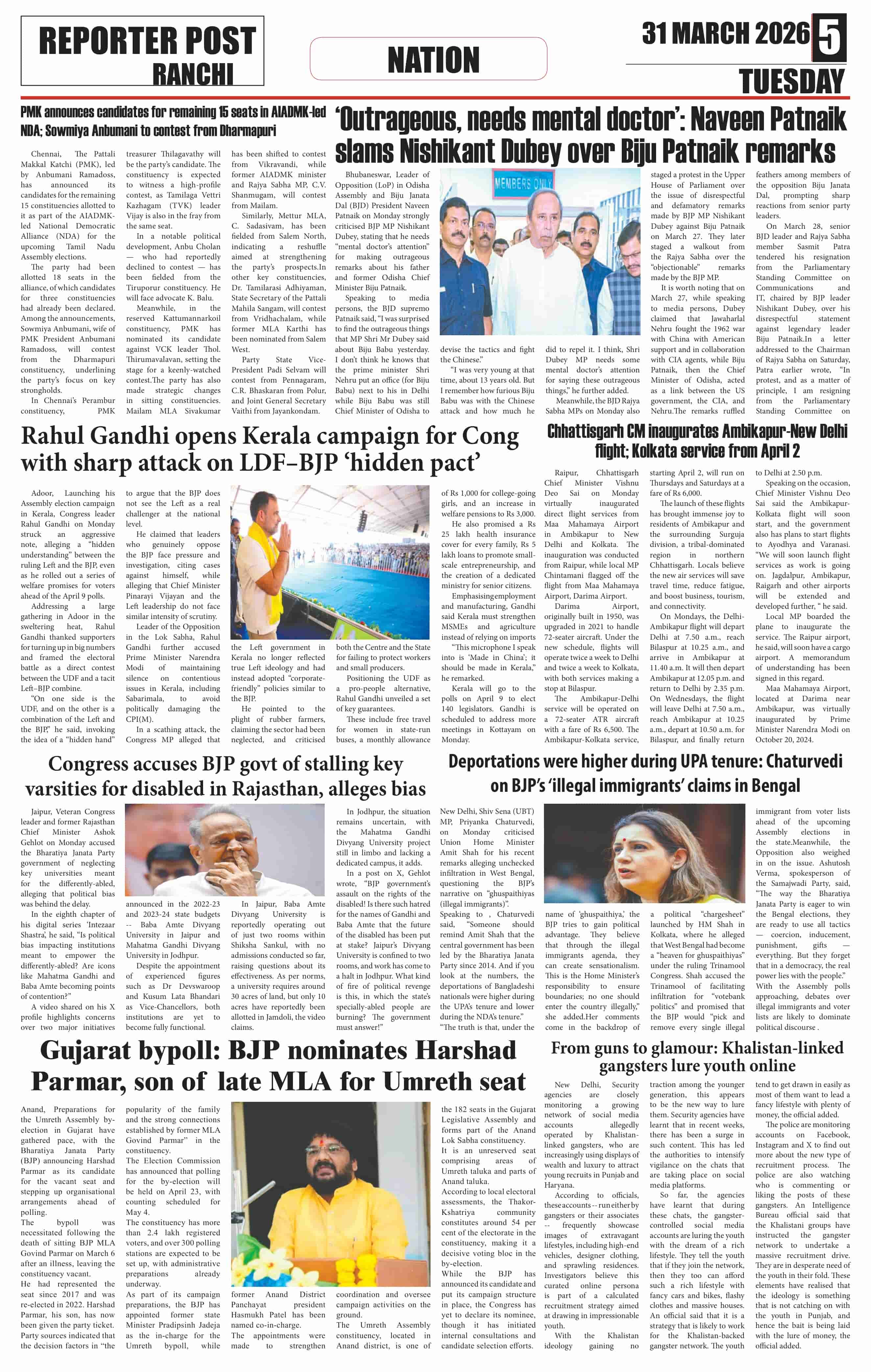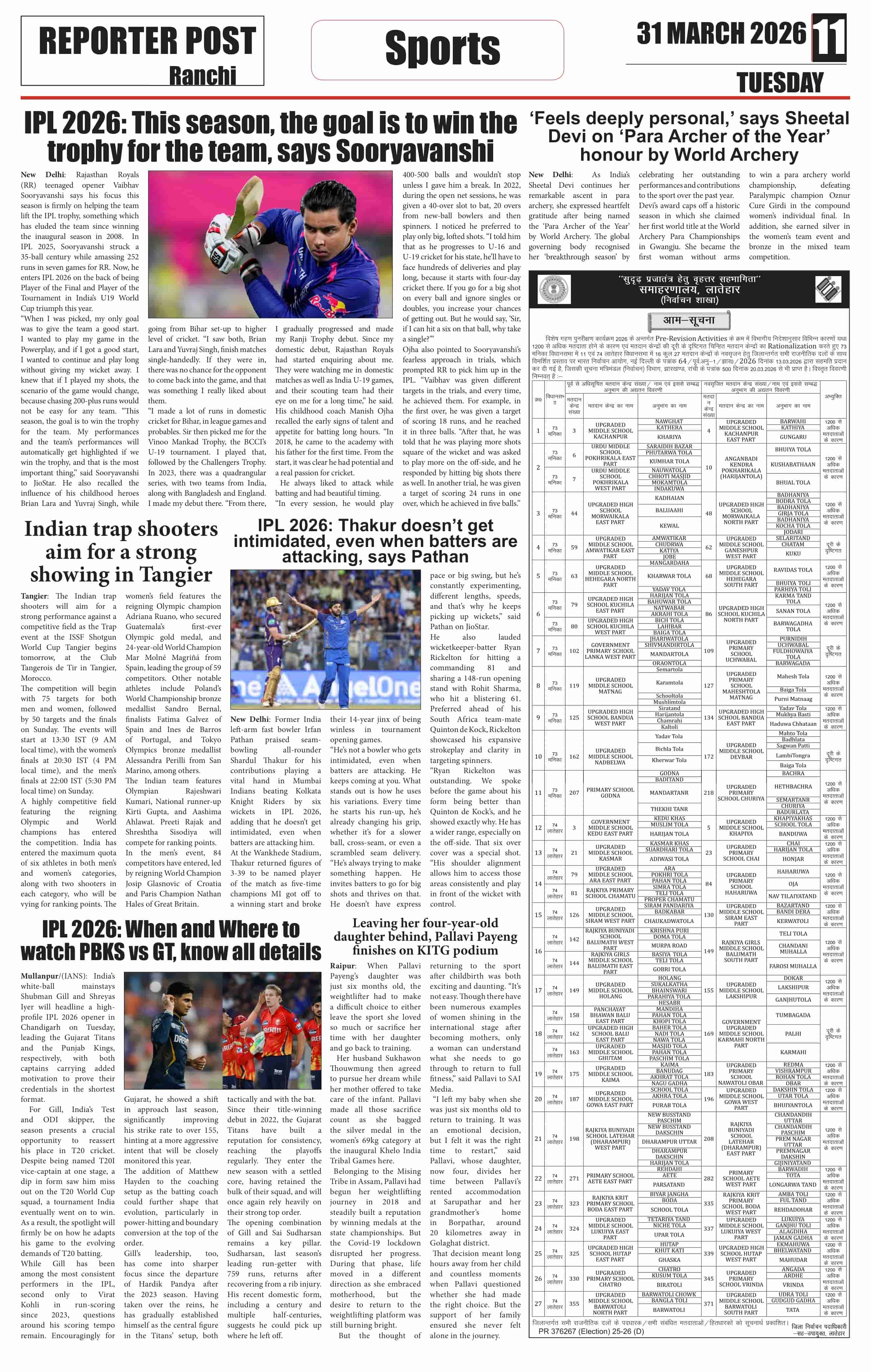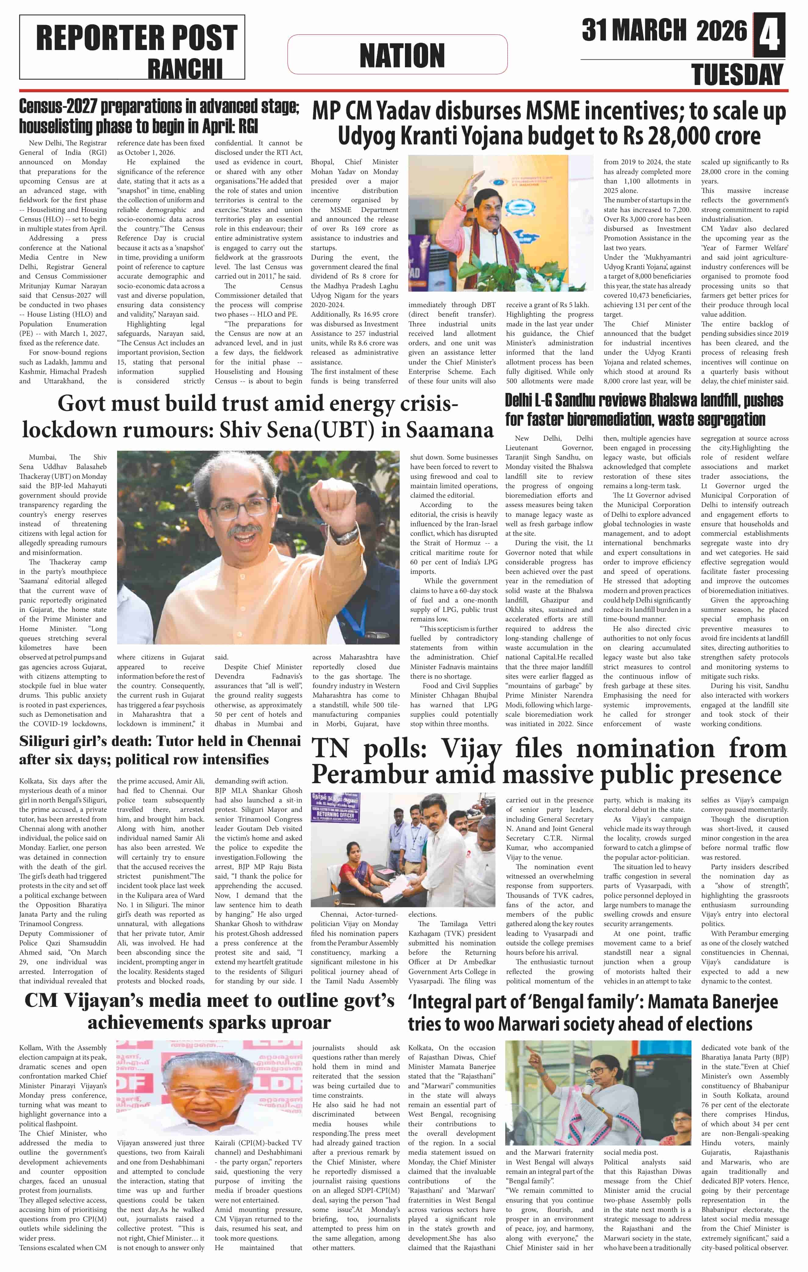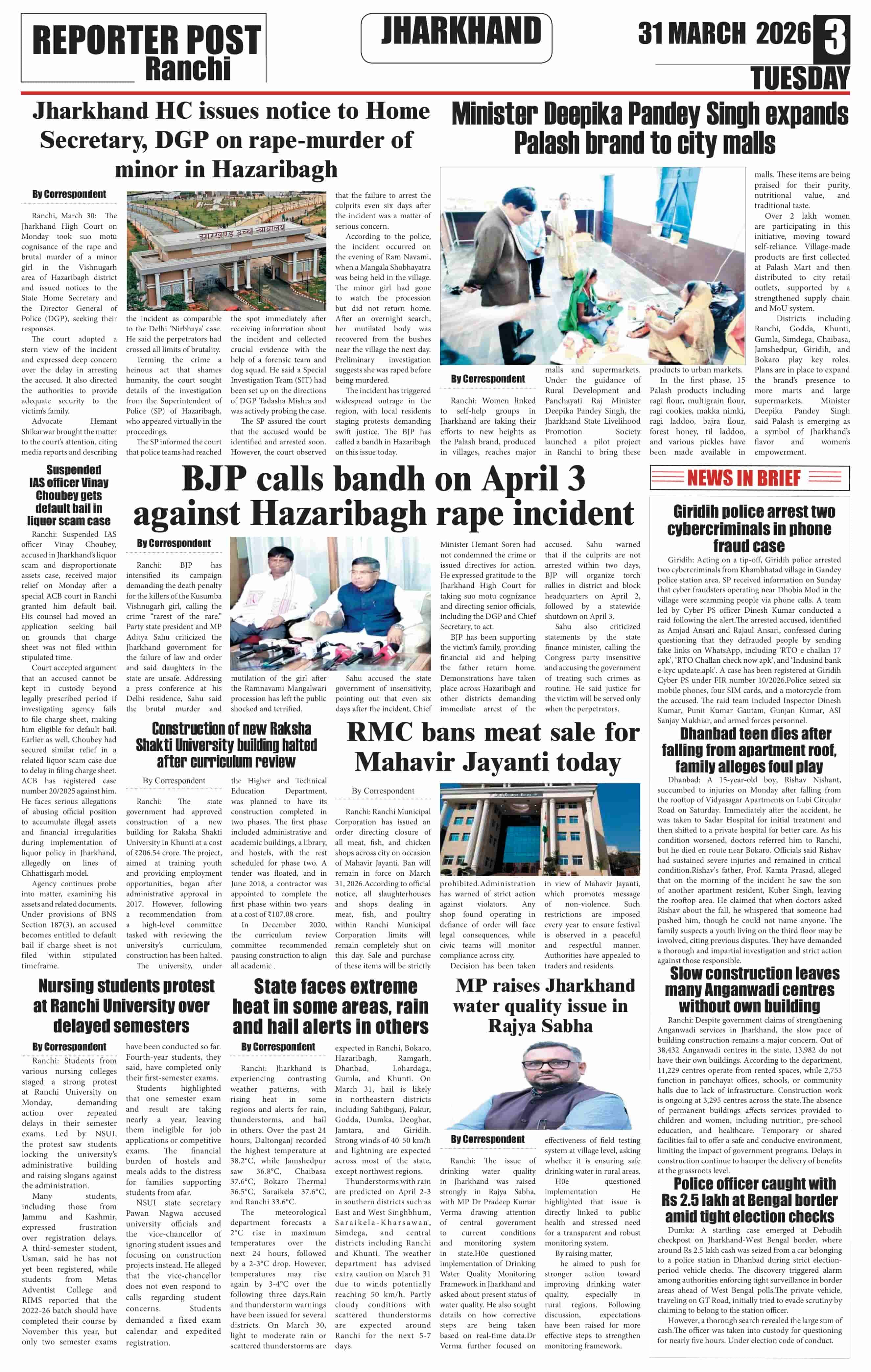 Tue, March 31, 2026 | Ranchi Edition
