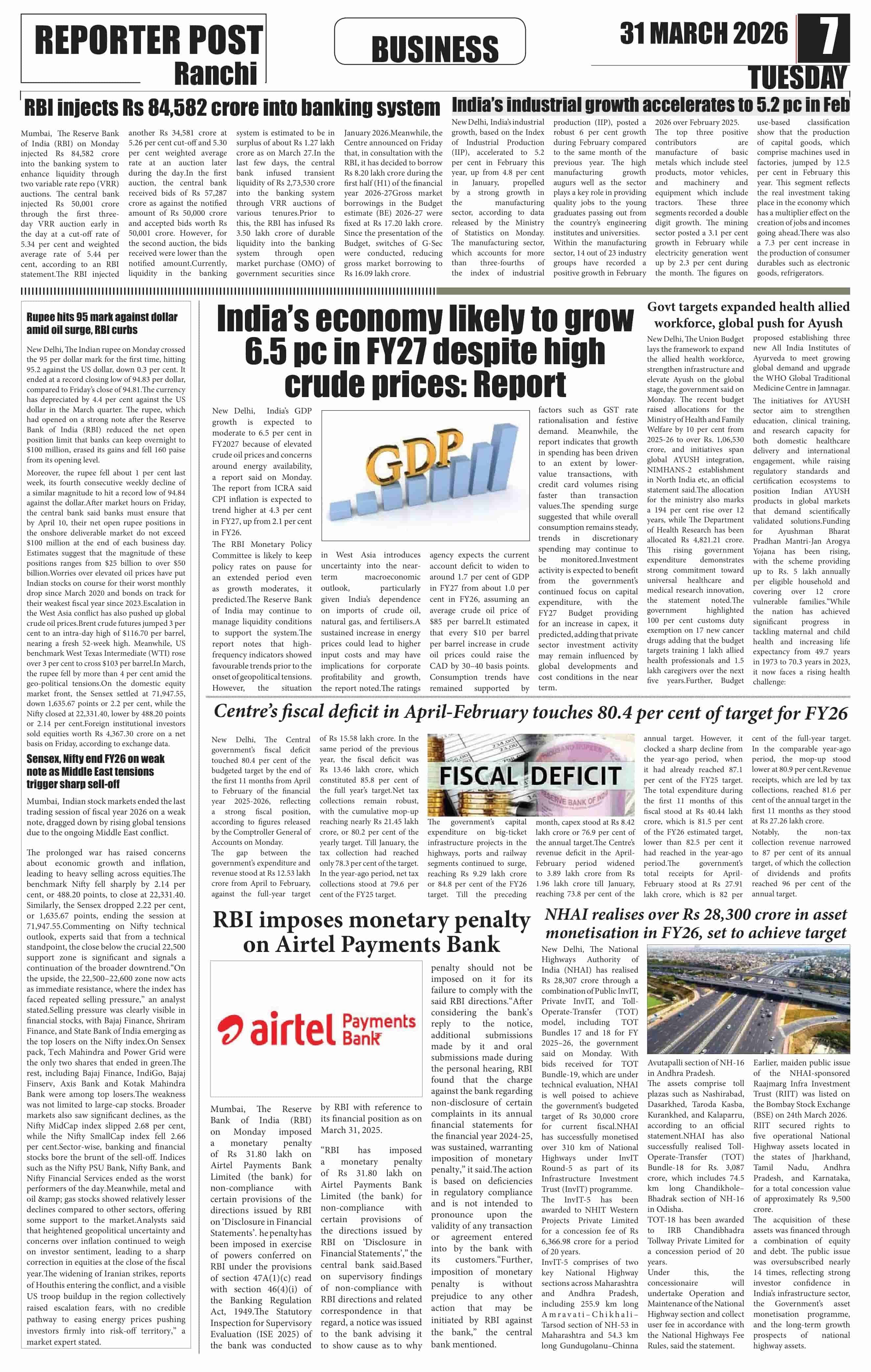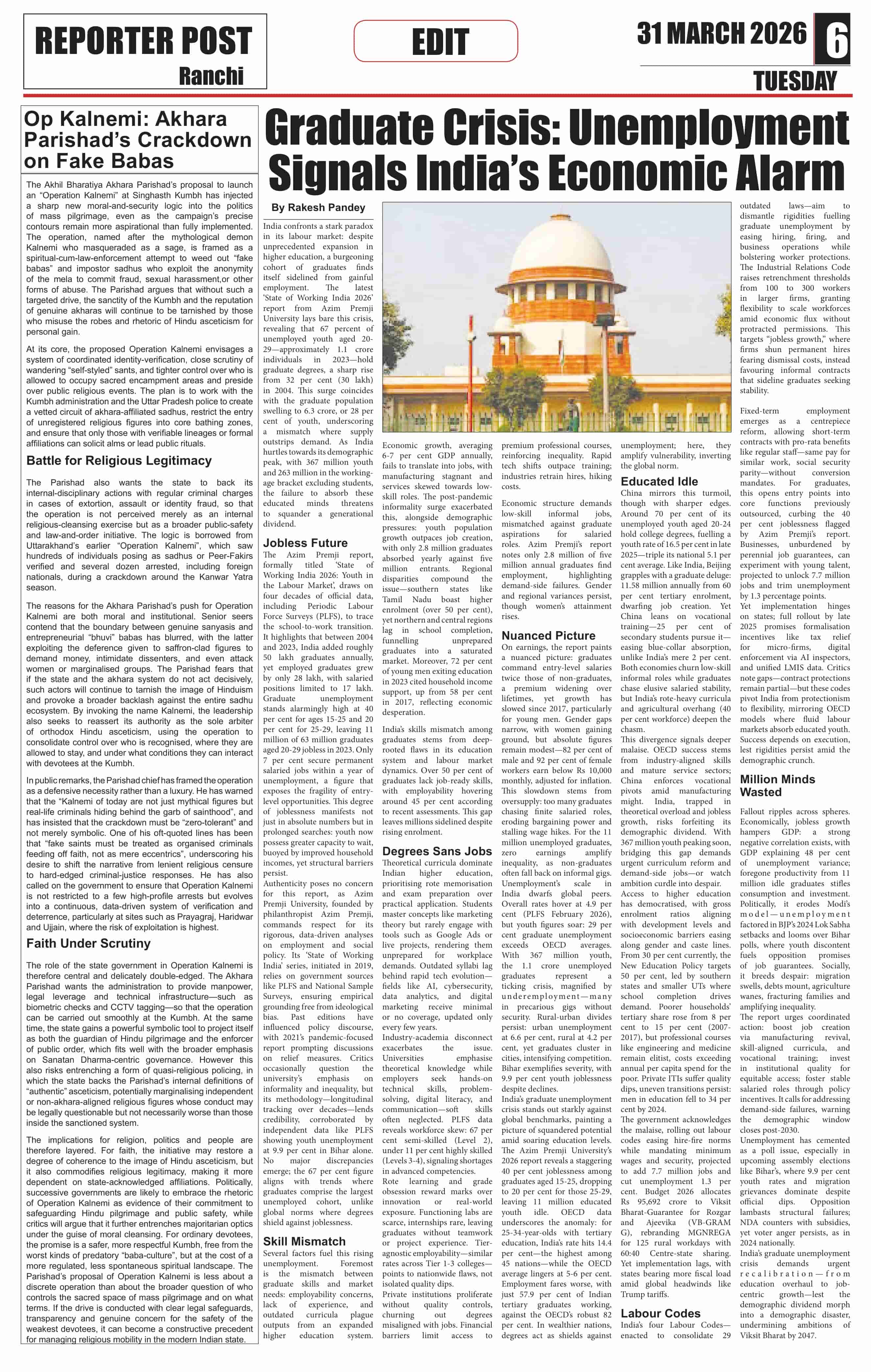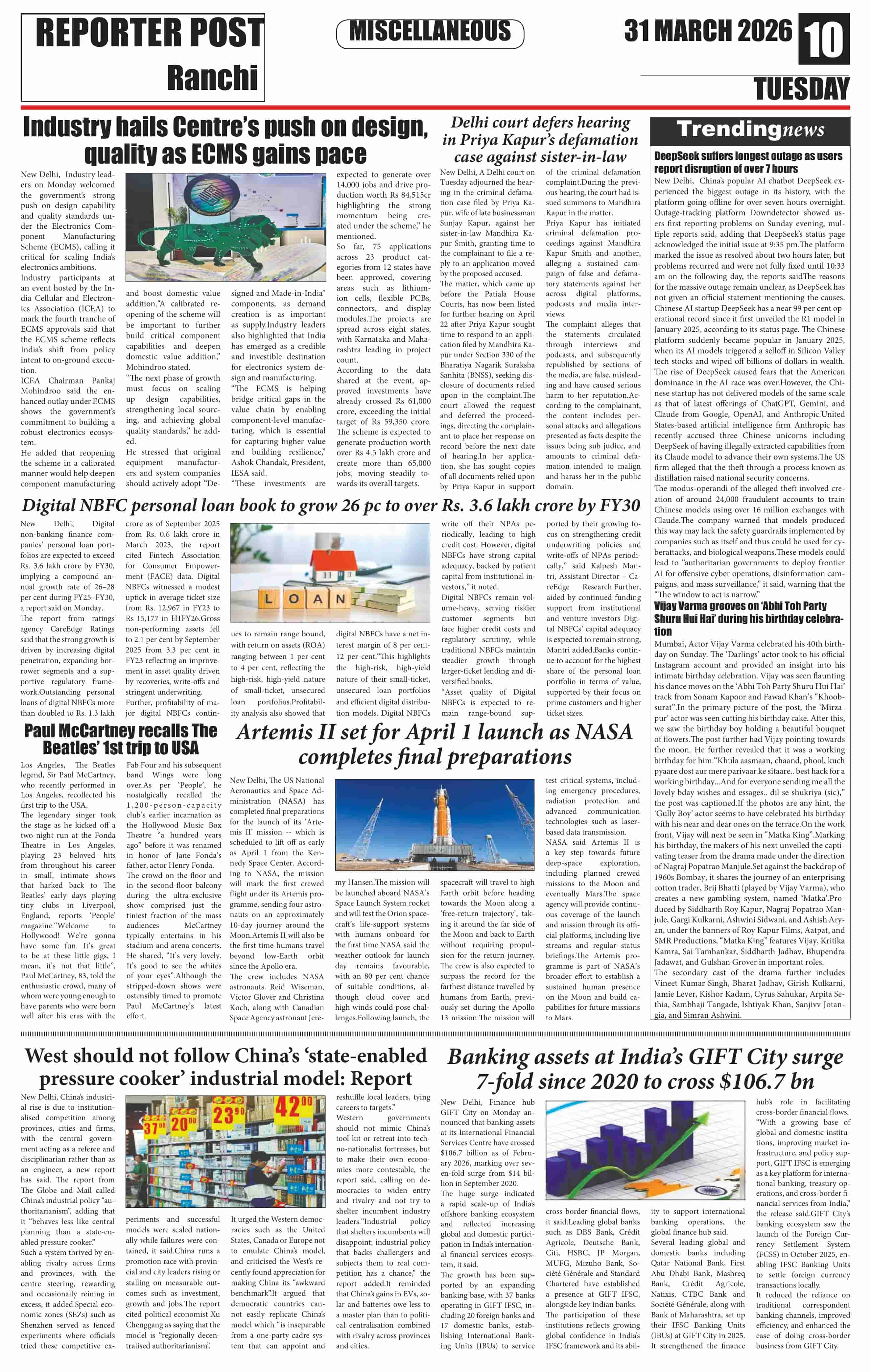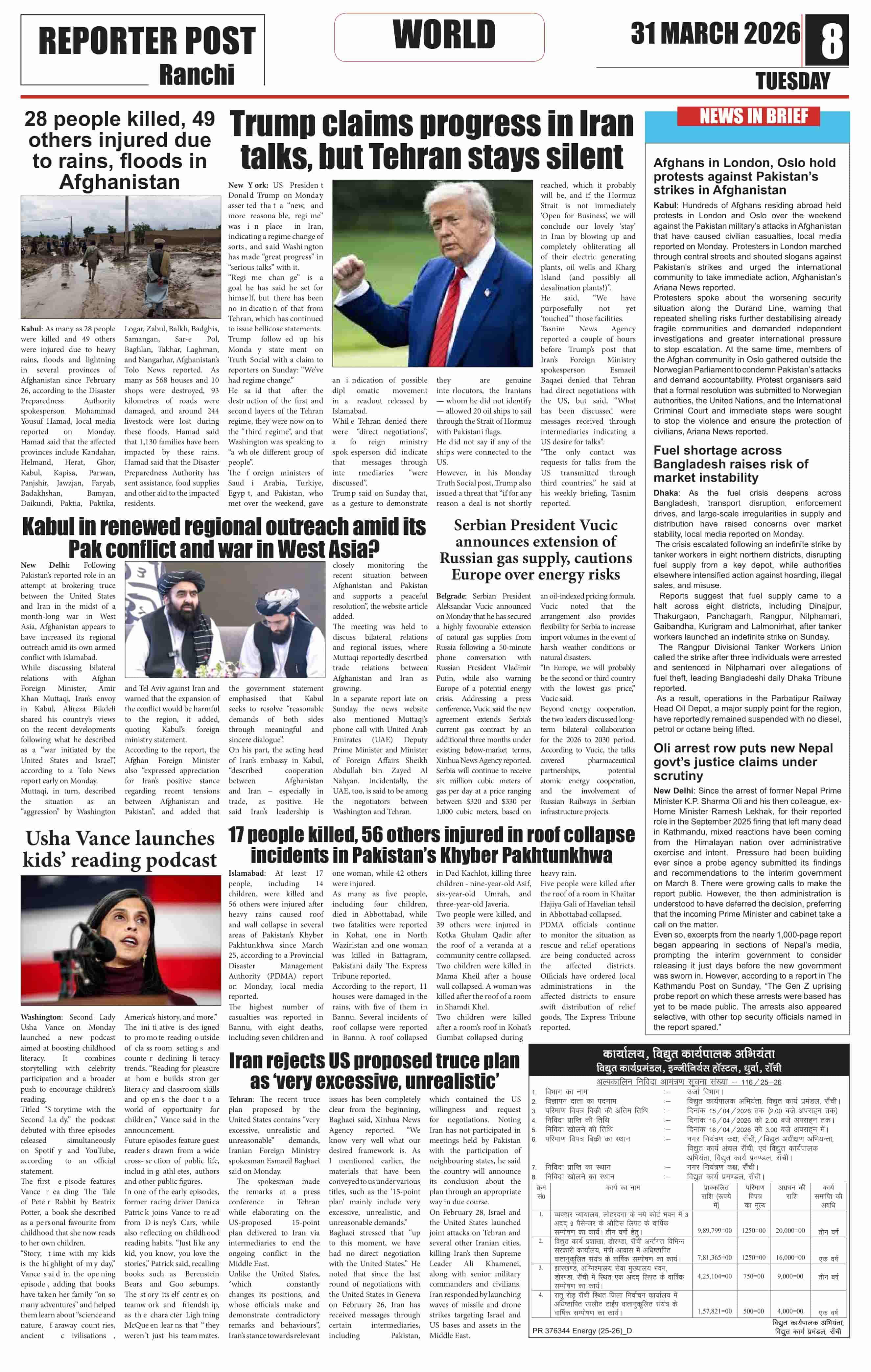 Tue, March 31, 2026 | Ranchi Edition